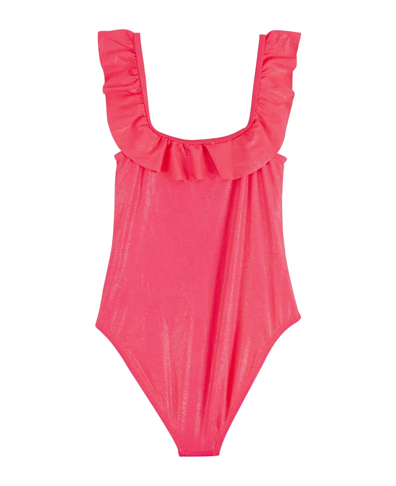 fuchsia color, by Billieblush Kids. Model with rouches and front print.