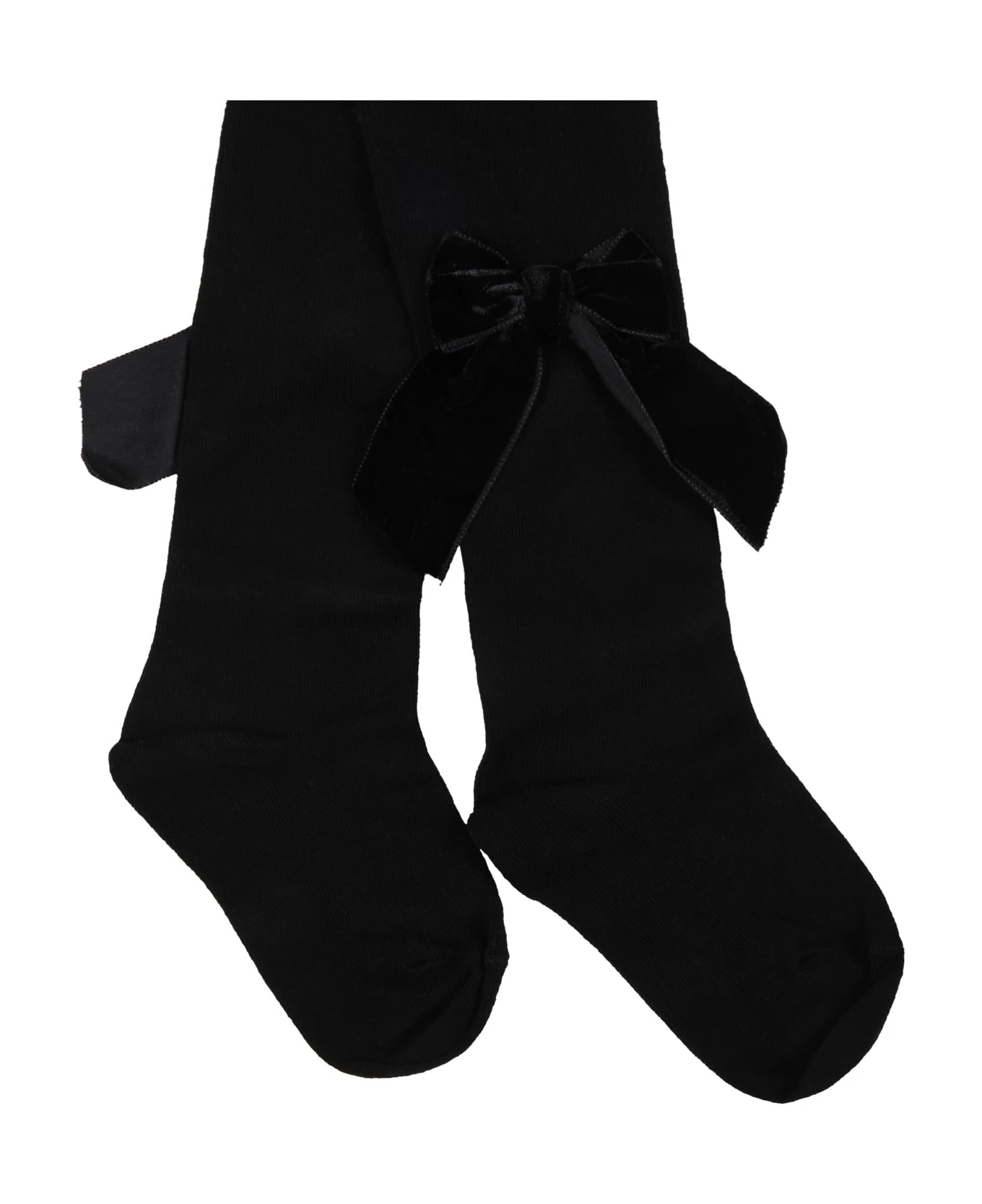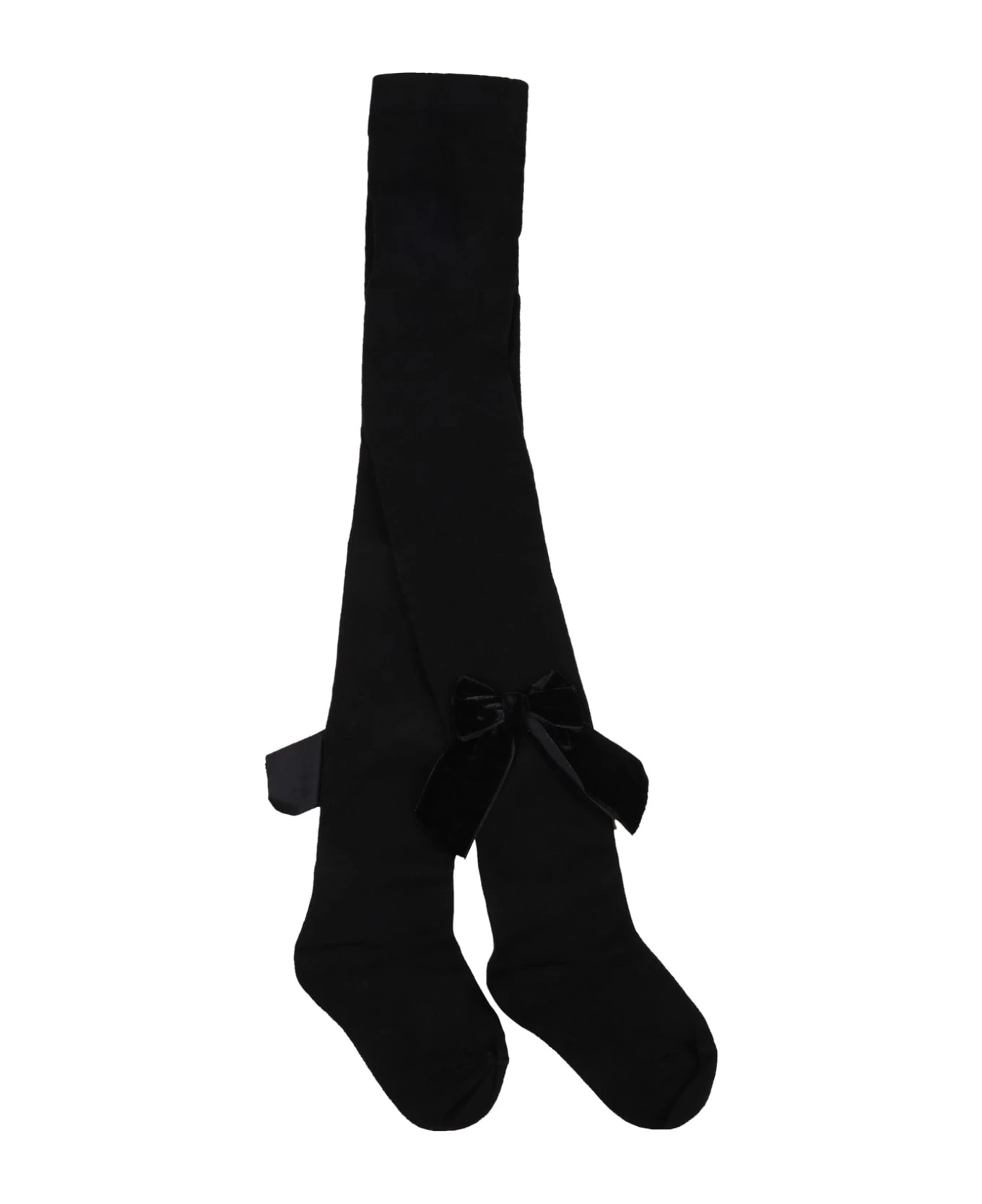 Black tights with elasticated waist, embellished with velvet bows on the front.