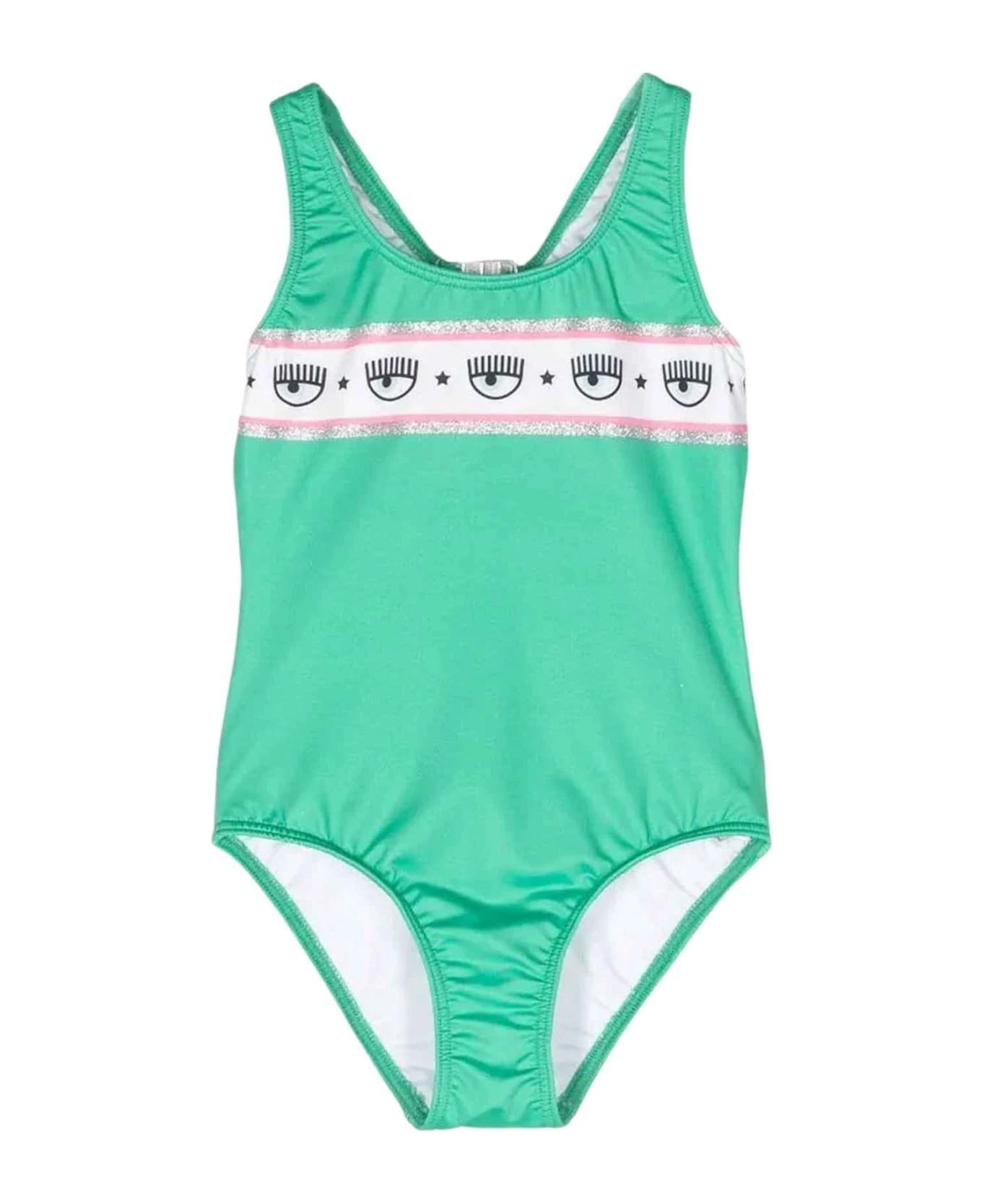 Green swimsuit girl. Logo patch, round neckline, cut-out detail and back buckle closure. Polyester 92%, Spandex/Elastane 8%