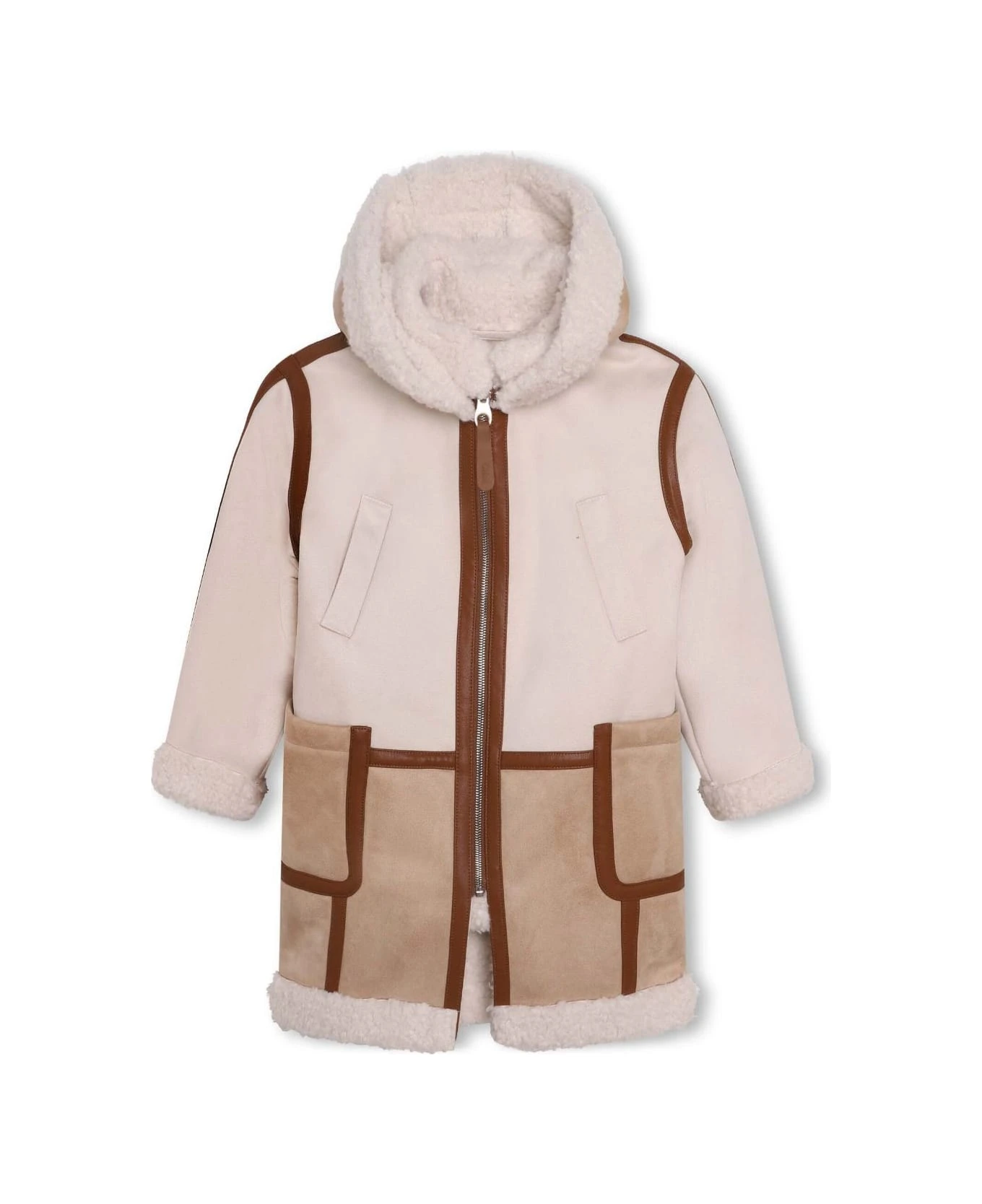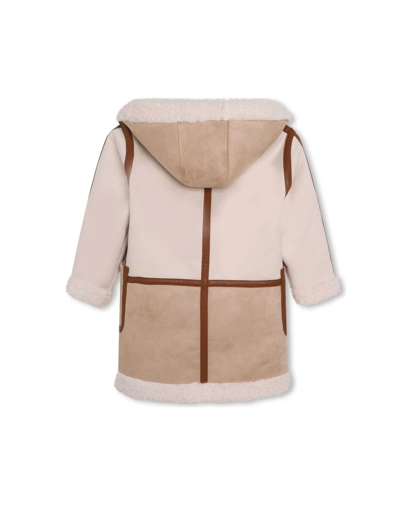 Chloé Chloe Cappotto Beige Con Pannelli A Contrasto In Montone Ecologico Con Cappuccio Bambina