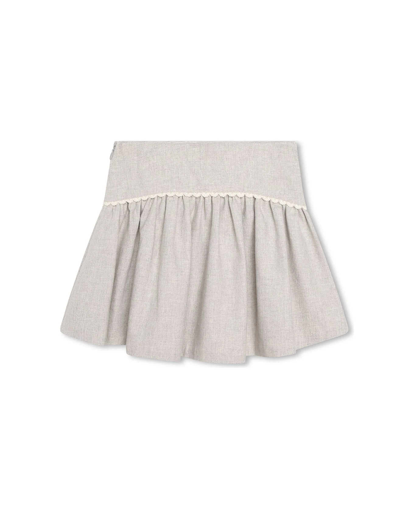 Chloé Kids skirt made from grey cotton and embellished at the waist with contrasting floral embroidery. Flared model with side zip fastening. Above-the-knee length.