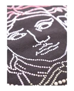 Grey sweasthirt, made from fleece cotton, with crewneck, long sleeves and ribbed cuffs and hemline; it is embellshed with side frills, with ivory vintage lace trim, ivory flowers embroideried on the sleeves and logo, always in avory, embroideried on the side.
