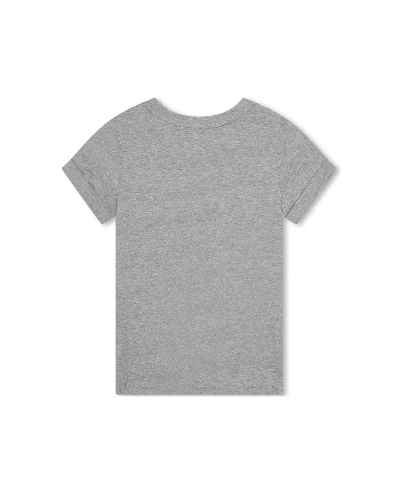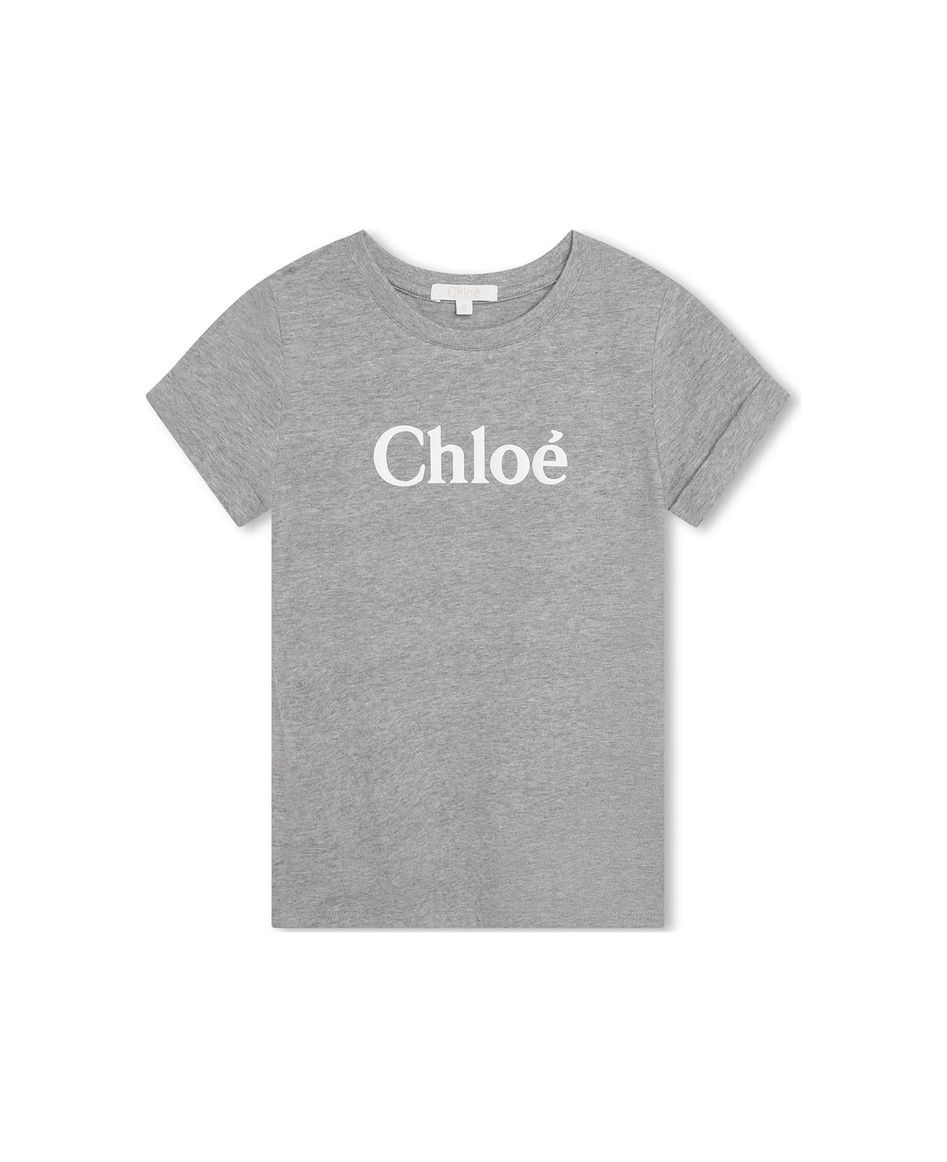 Chlo ids t-shirt made of grey melange organic cotton and featuring a round neckline, short sleeves with turn-ups and a white Chlo ogo printed on the chest.