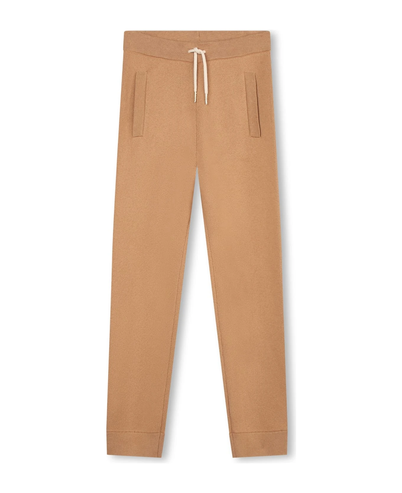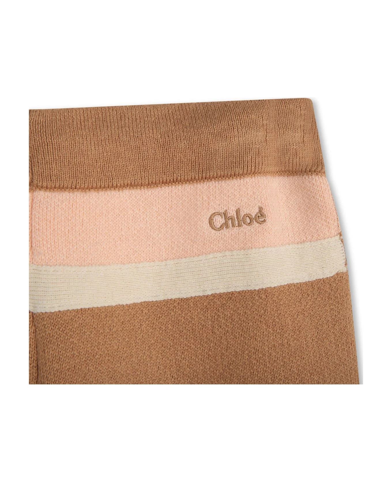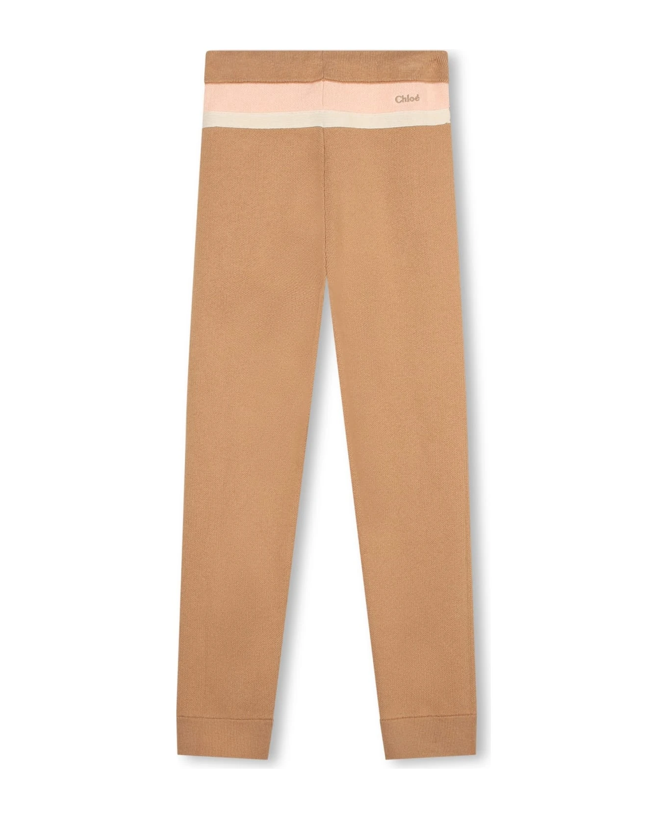 stripe-detail knitted track pants from CHLOÉ KIDS featuring light brown, white, light pink, cotton-wool blend, knitted construction, stripe detailing, logo print to the rear, elasticated drawstring waistband, ribbed ankles and two front jetted pockets.