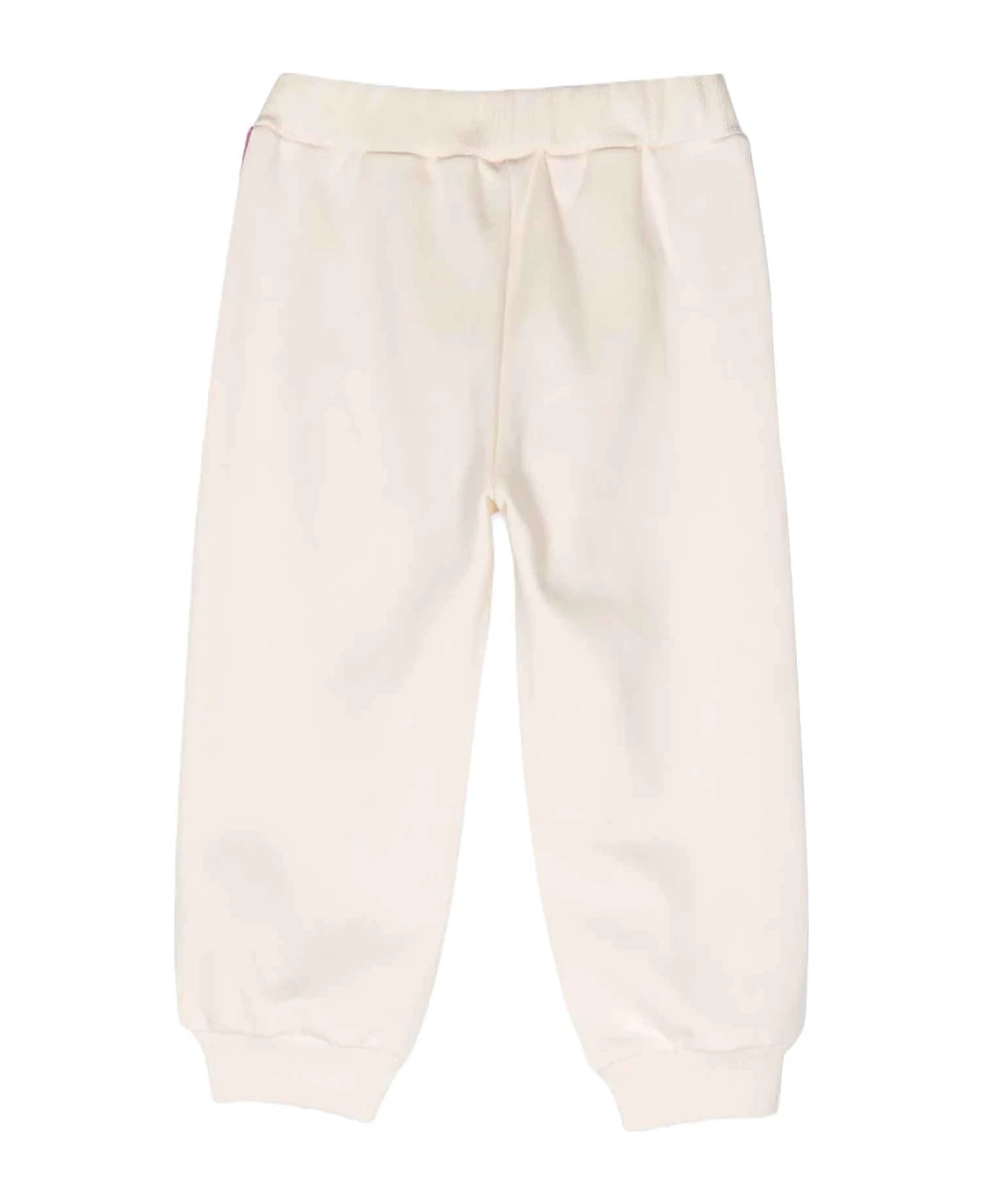 Cream trousers girl. Logo print on the leg, elasticated ankle cuffs, elasticated waist and two pockets with inserts. 100% Cotton