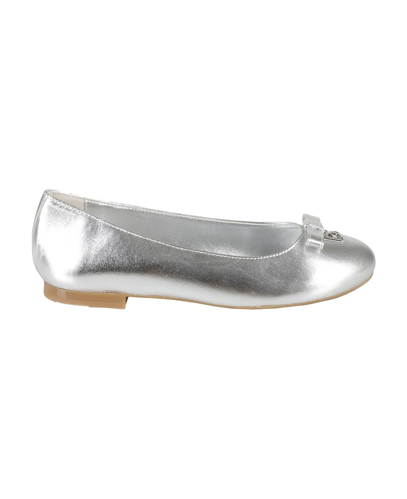 Birkenstock ‘ariziona’ Silver-colored Flat Sandals With Double Buckles In Metallic Leather Girl