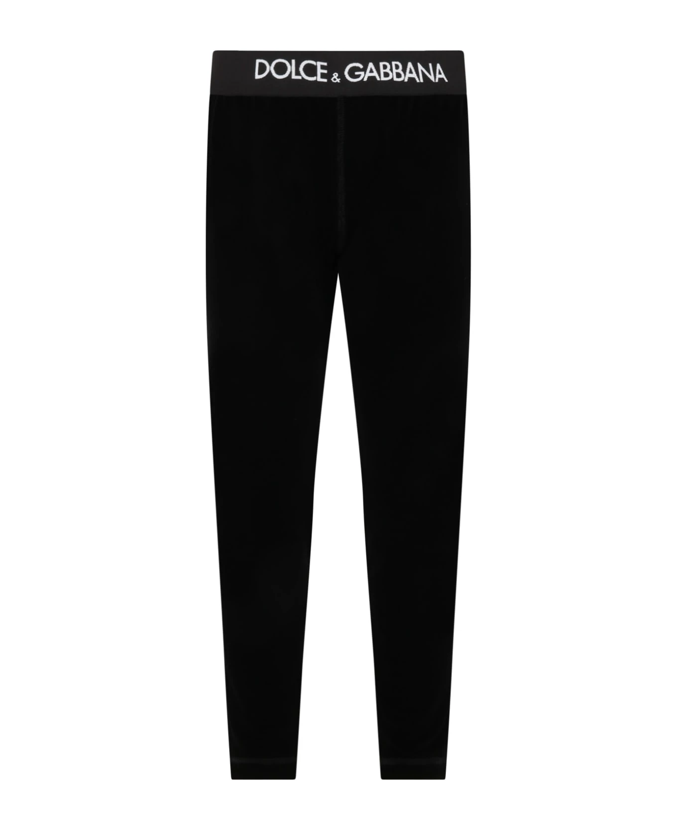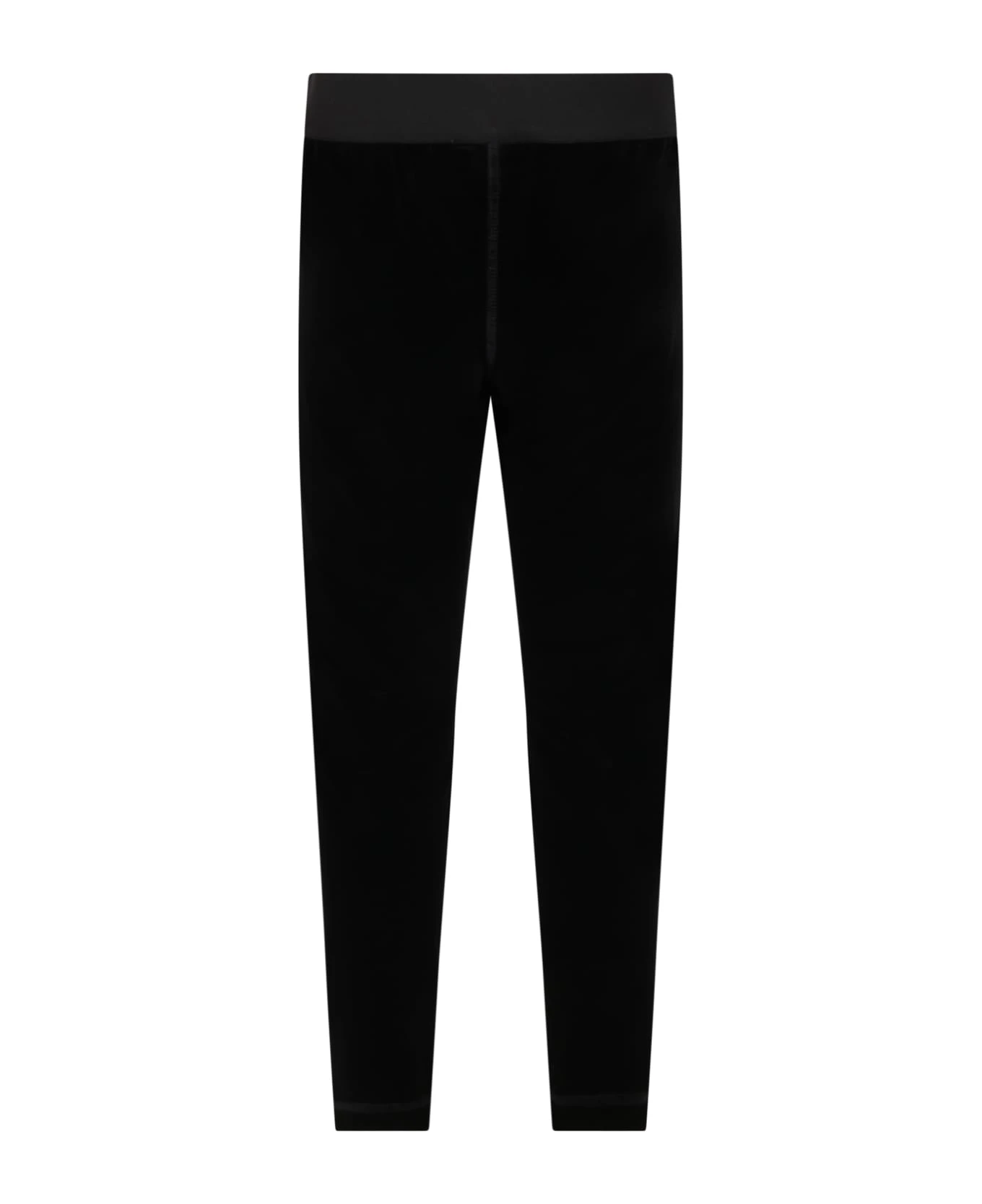 Black velvet trousers with elasticated waistband. They are embellished with white logo on the top.