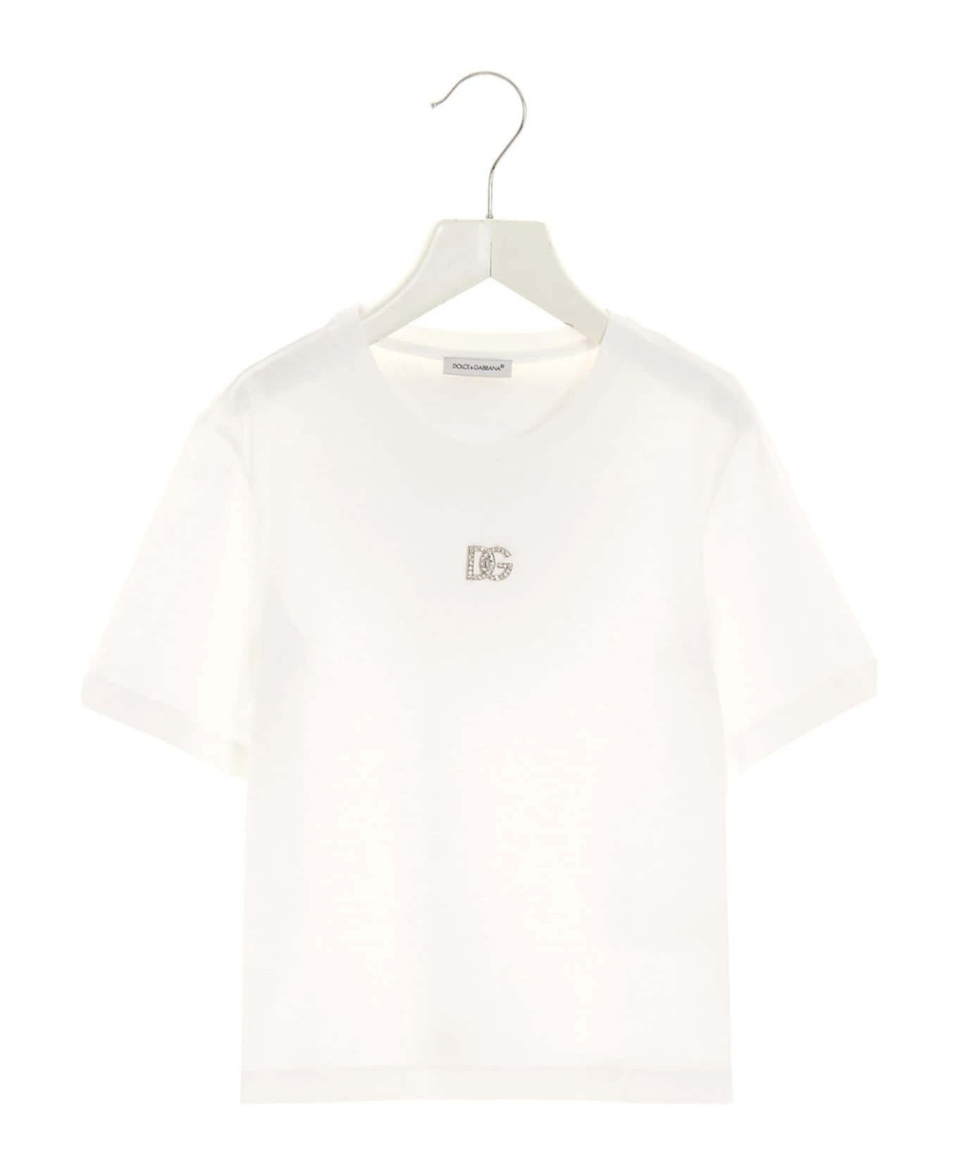 Cotton crew neck t-shirt with ‘DG’ crystal logo, short sleeves.