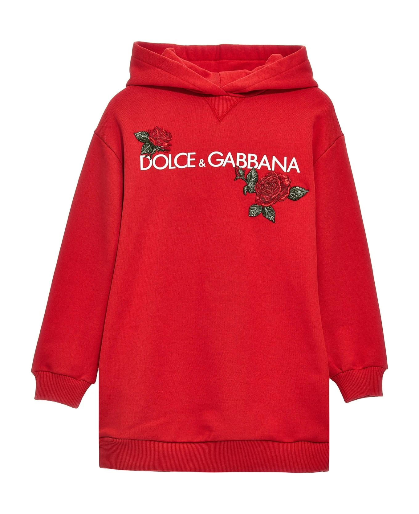 Cotton hoodie with front logo print and embroidery application, long cuffed sleeves.