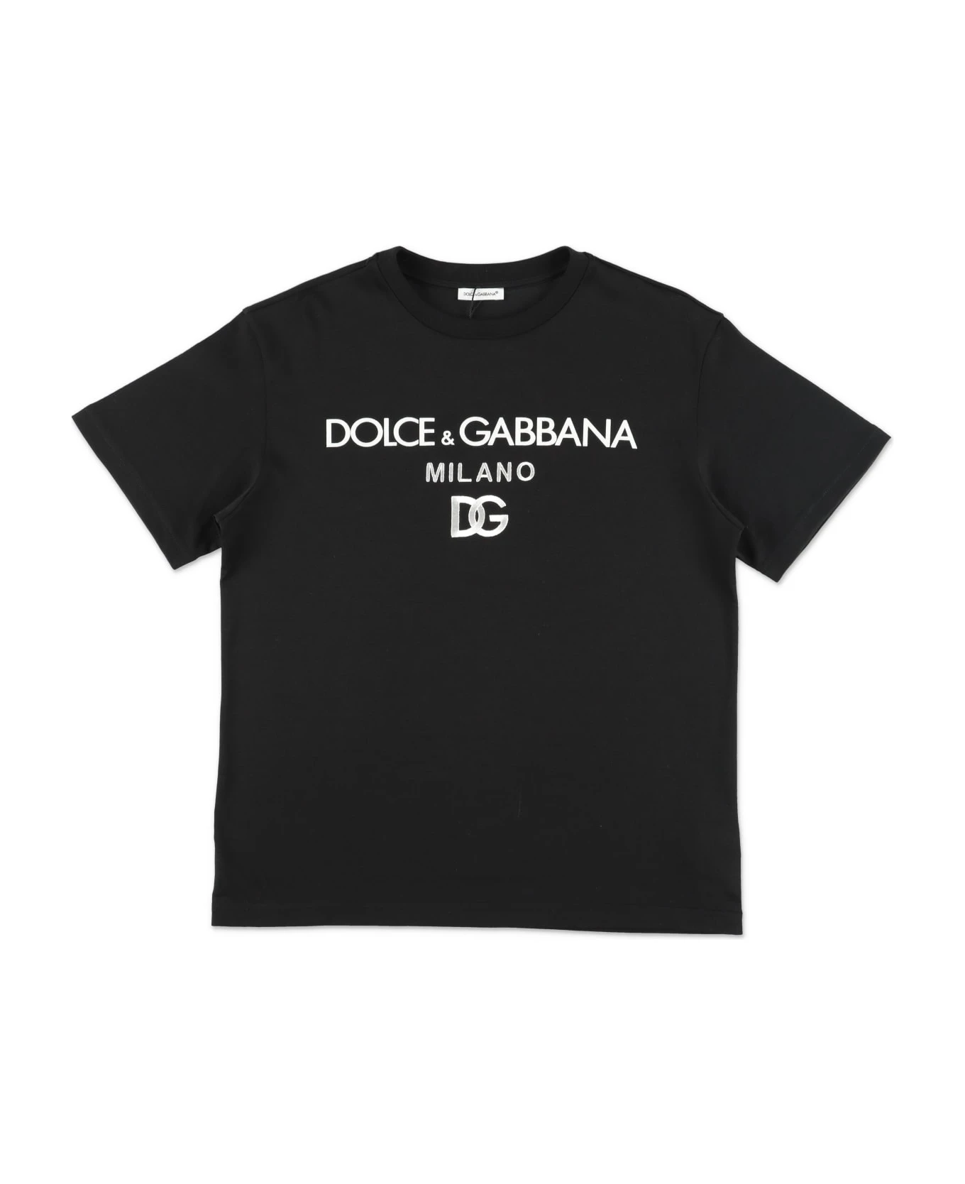 Dolce & Gabbana T-shirt Nera In Jersey Di Cotone Bambino
