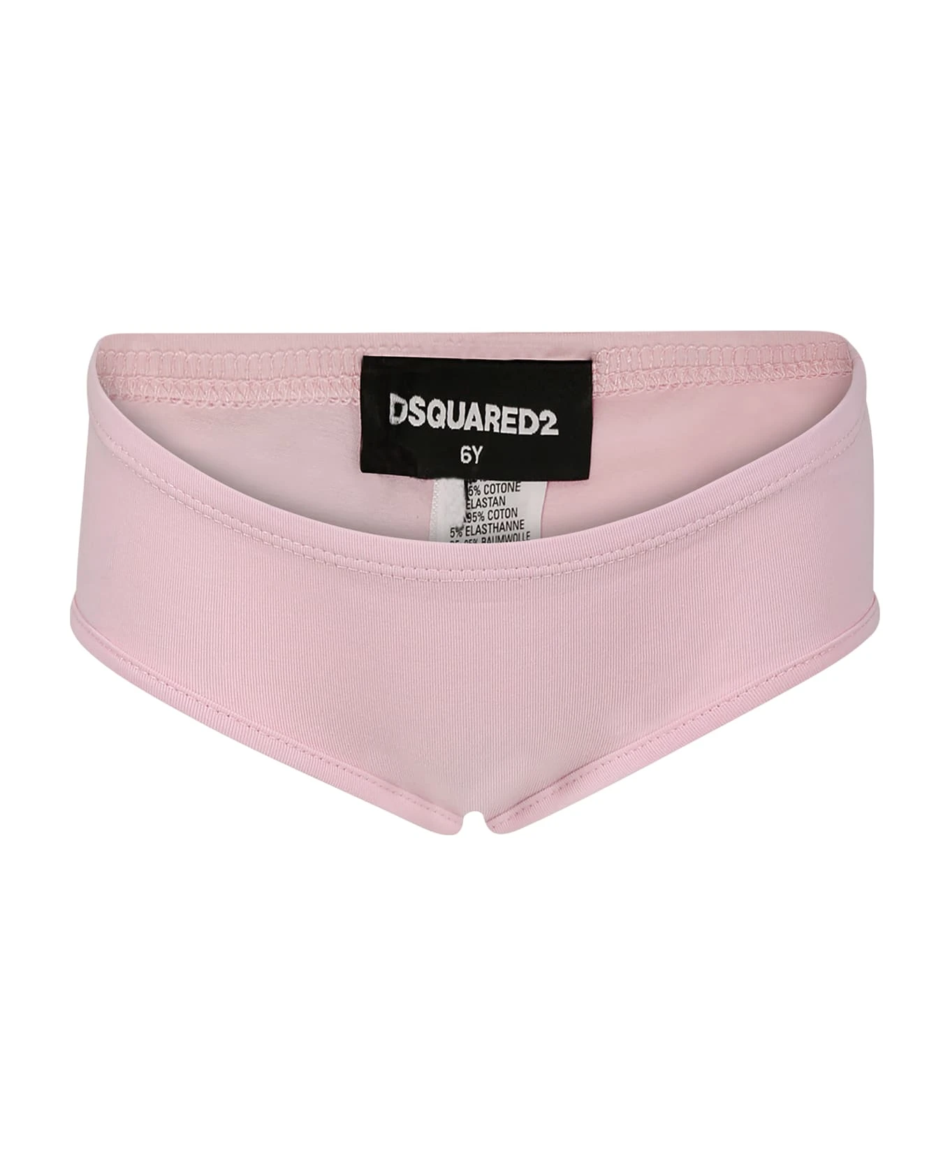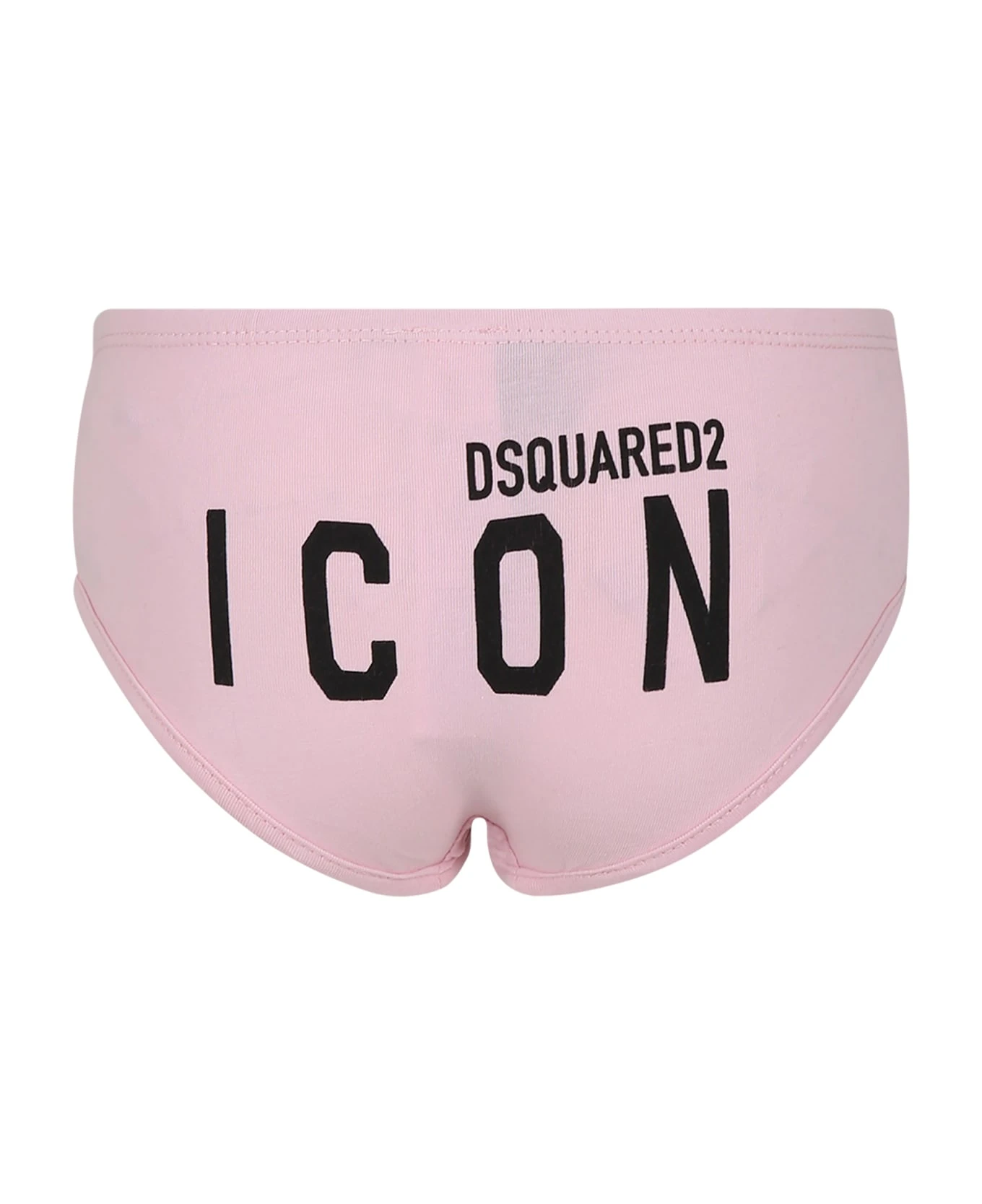 Pink briefs with elasticated waist. It is embellished with black logo printed on the back.