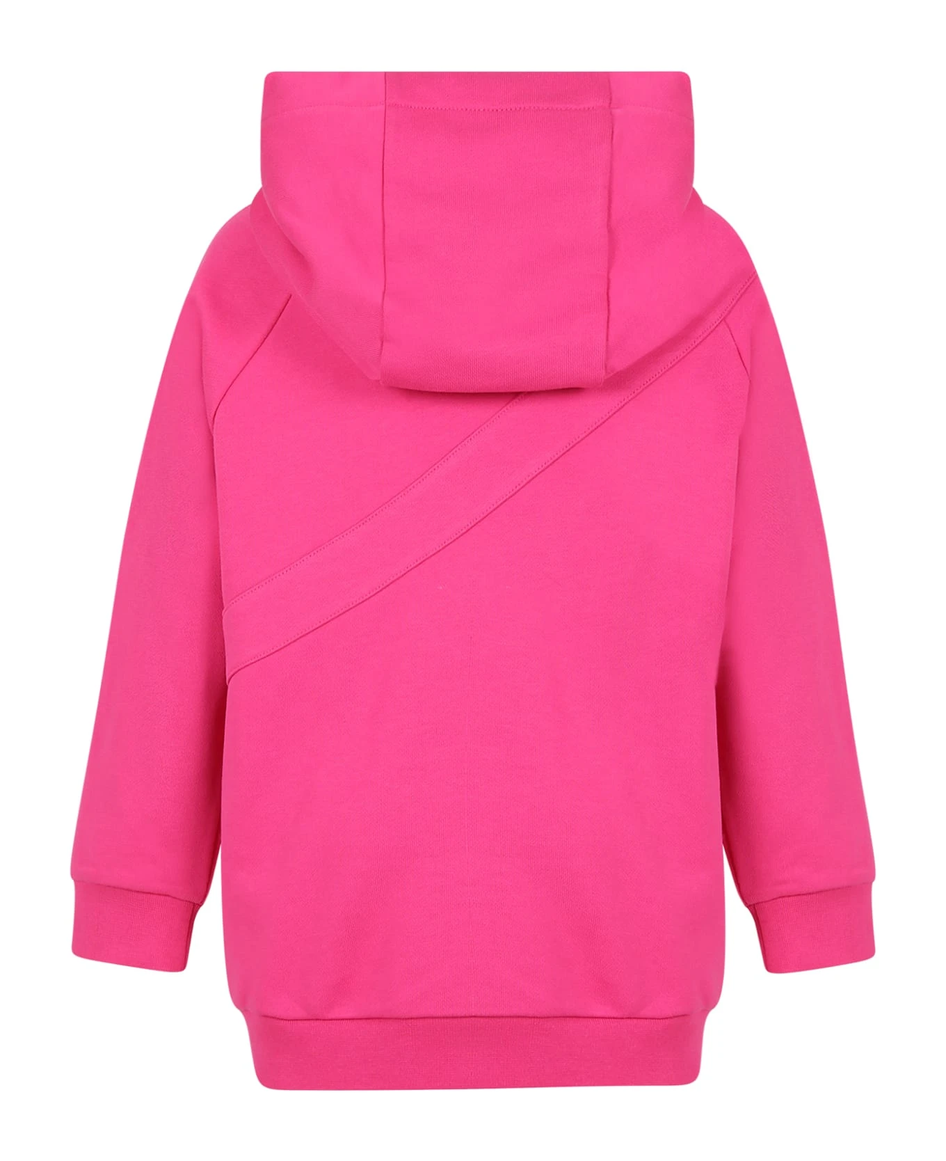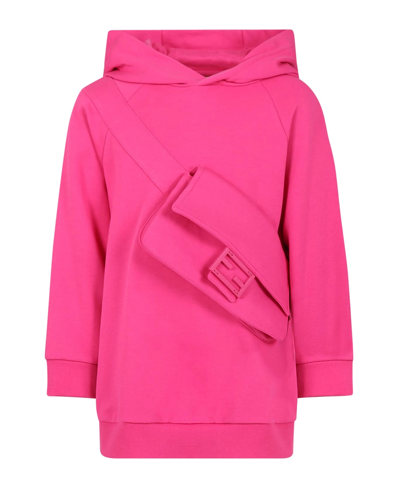 Fuchsia oversize hooded sweatshirt with long sleeves, made from brushed cotton; it is embellished with frontal maxi Baguette and clip button FF logo.