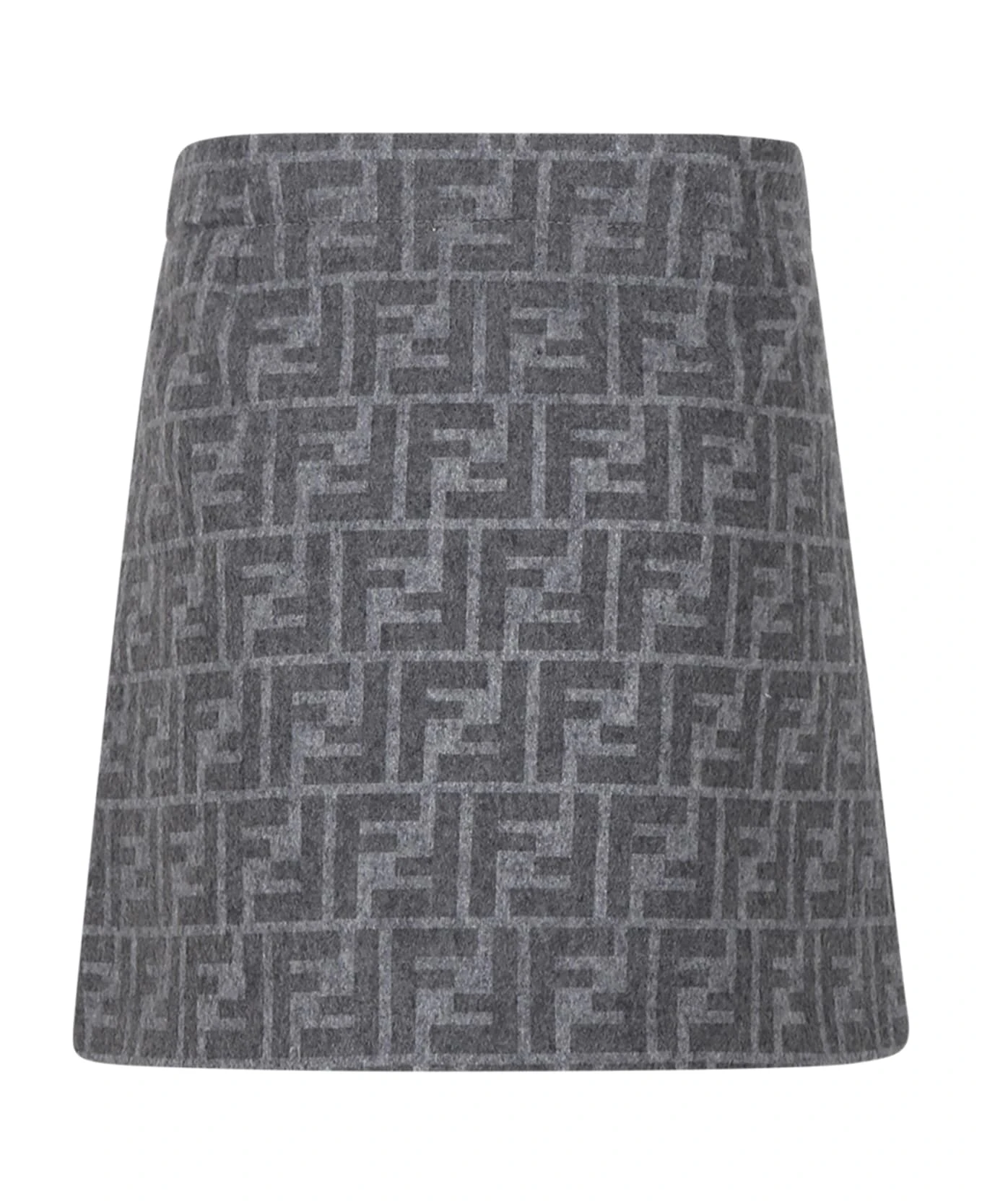 Grey wraparound miniskirt made from wool cloth, with xip faster on the side; it is embellished with all-over logo.