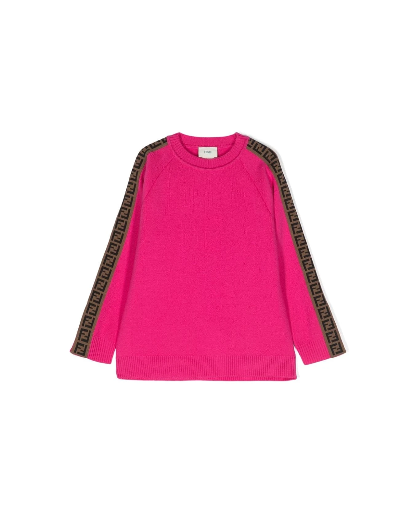 Fendi Pullover Fucsia Fluo In Maglia Di Pura Lana Vergine Bambina