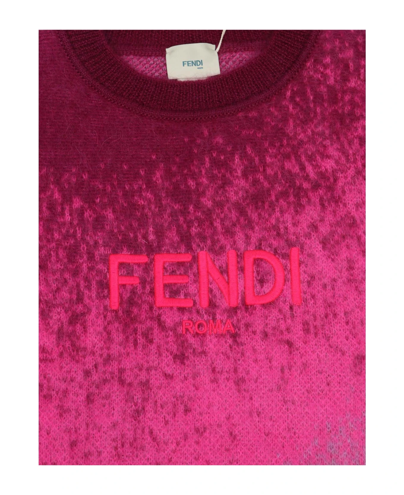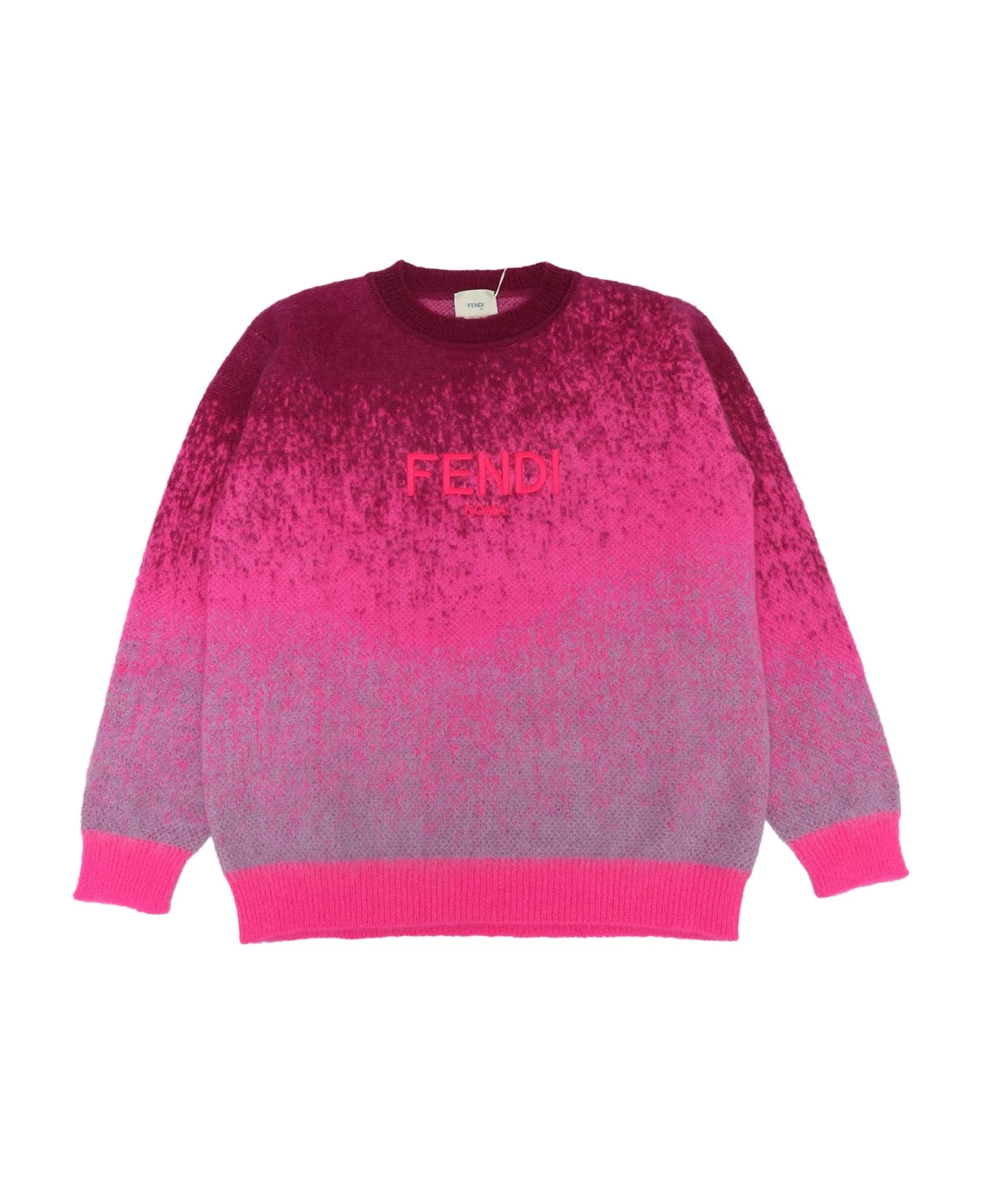 Mohair blend sweater, crew neck, gradient pattern, logo embroidery, ribbed edges