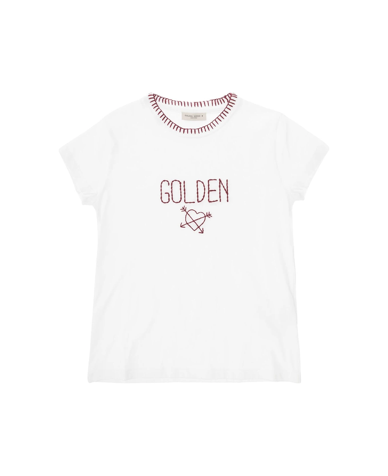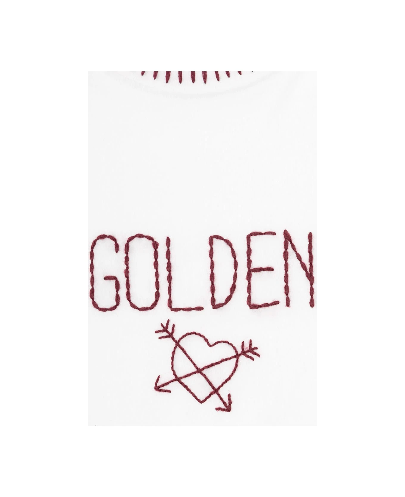 Golden Goose Journey/ Girl’s T-shirt/ Cotton Jersey With Golden And Neck Embroidery Include Il Codice Gyp01390 | P001298 -10100