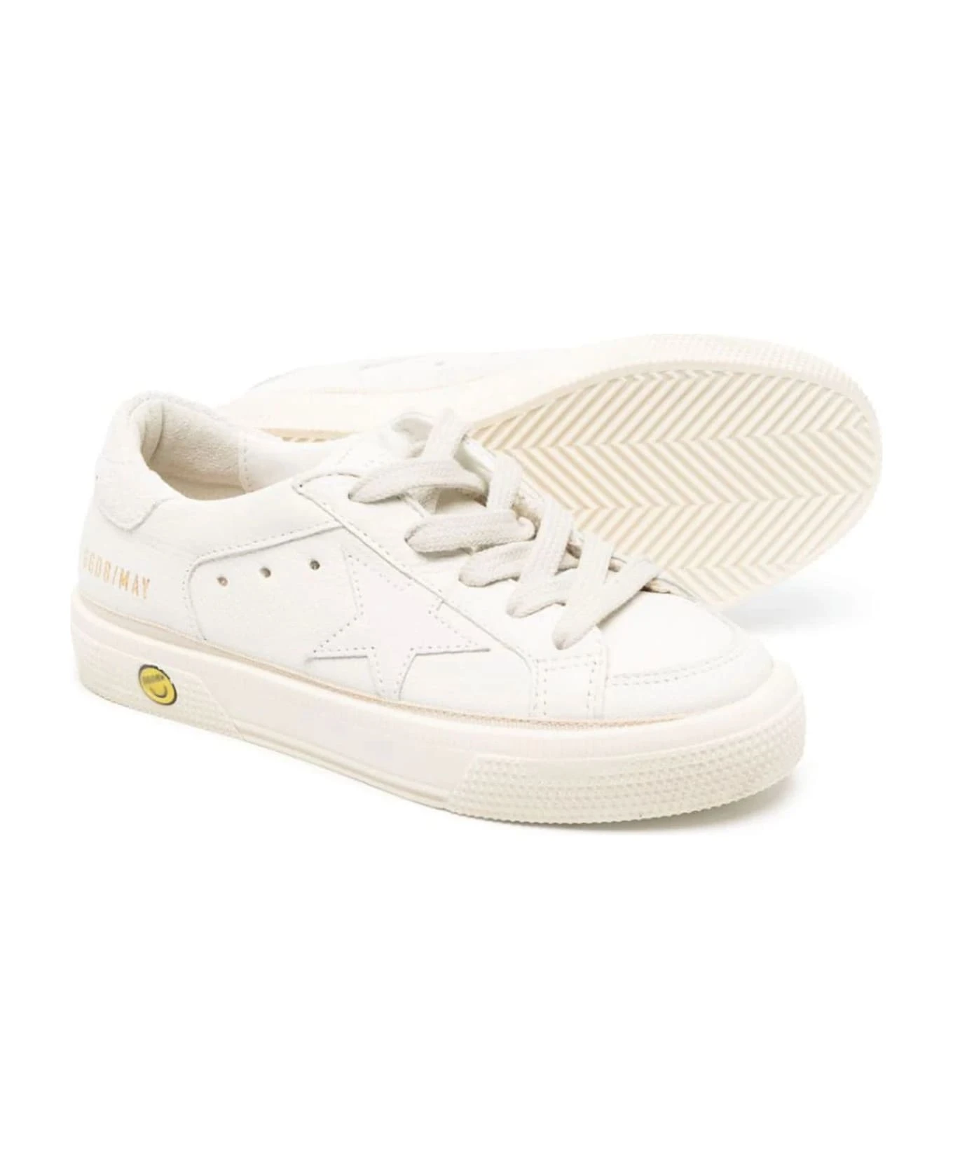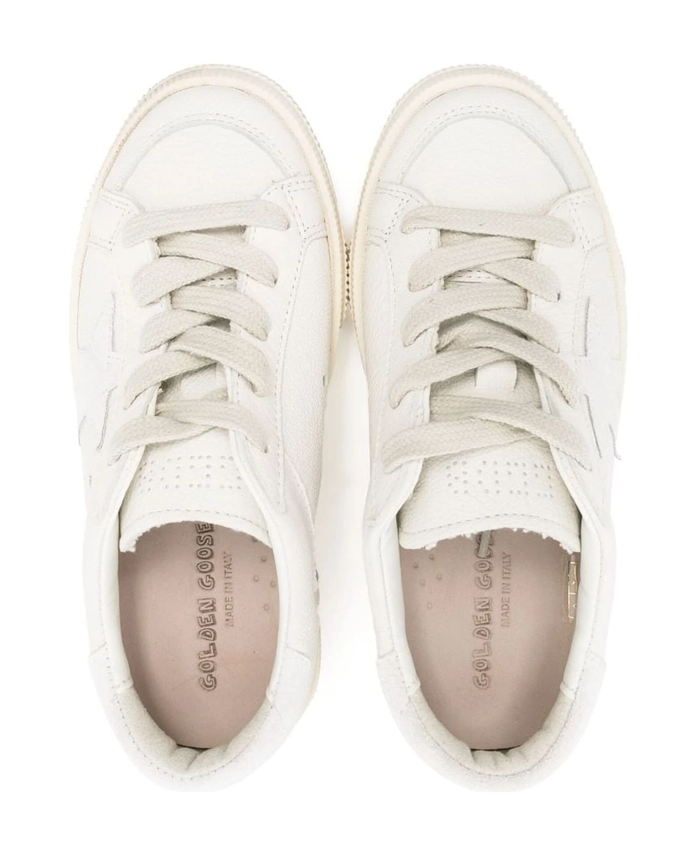 Off-white calf leather sneakers, round toe, signature star patch to the sides, front lace-up fastening, perforated detailing, flat rubber sole