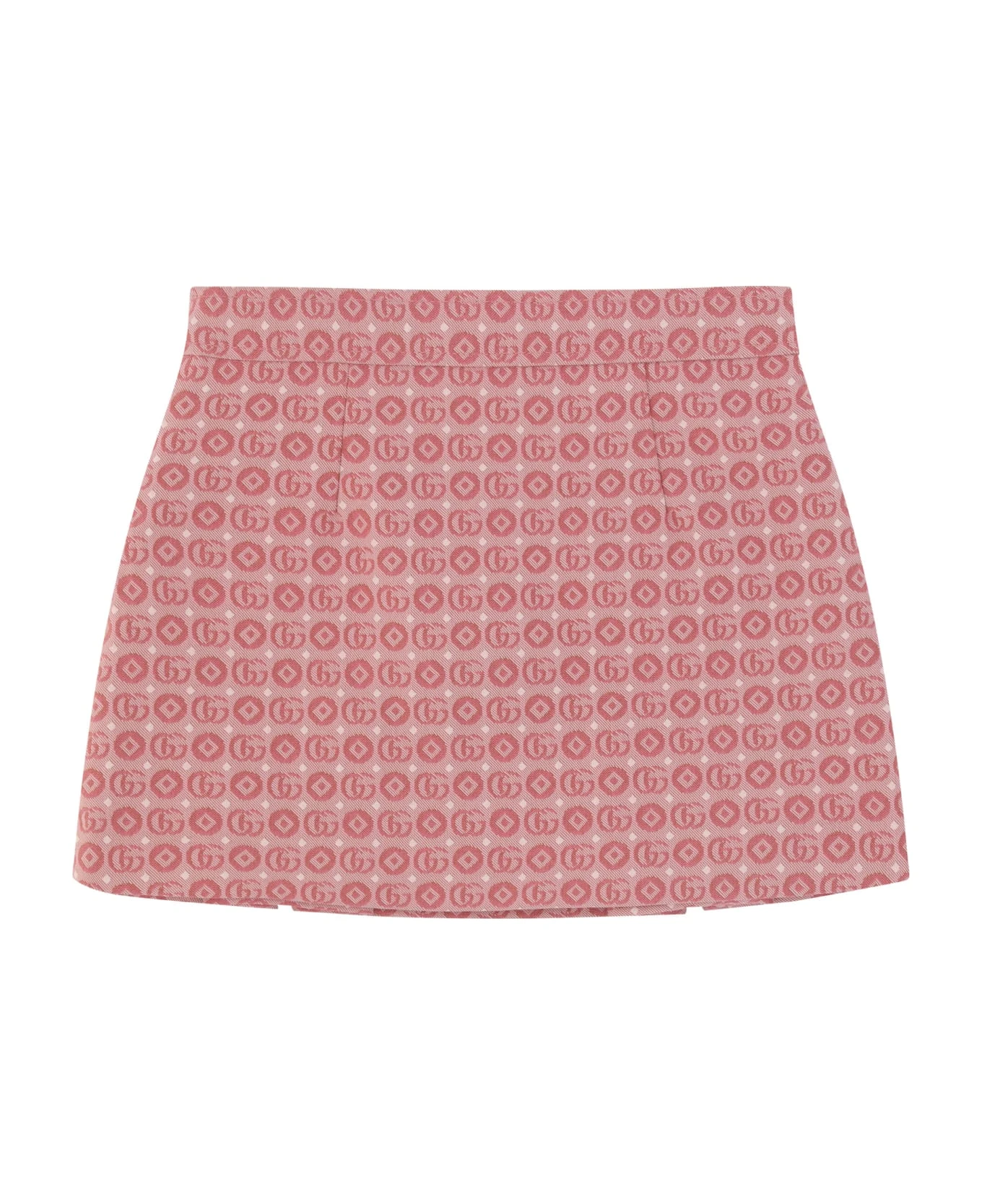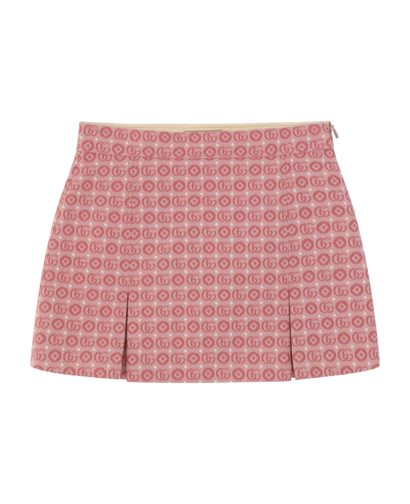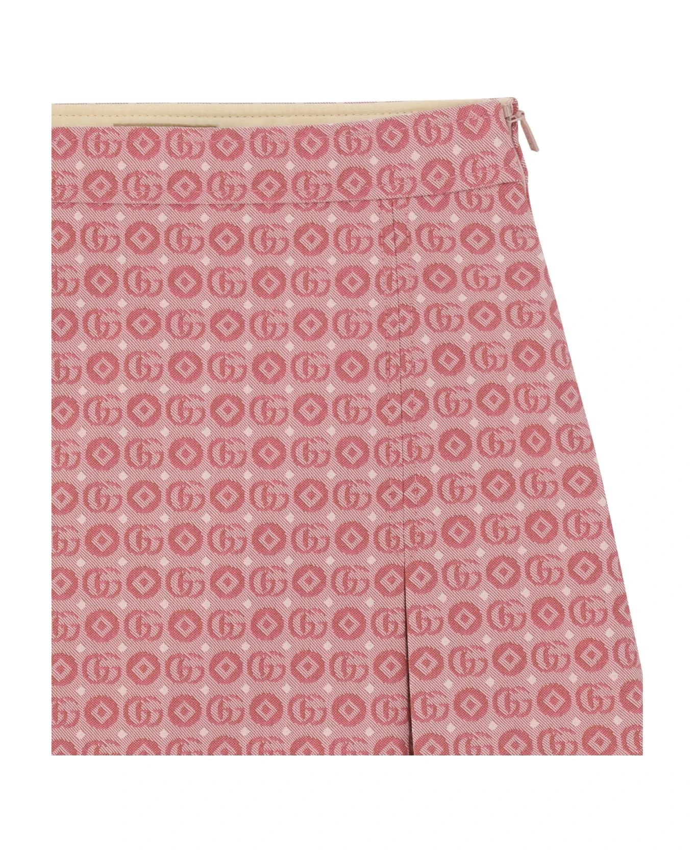 Cotton skirt for girl by gucci, closure on the side panel with invisible zipper, slight front slits, iconic gg logo embroidered tone on tone all-over.