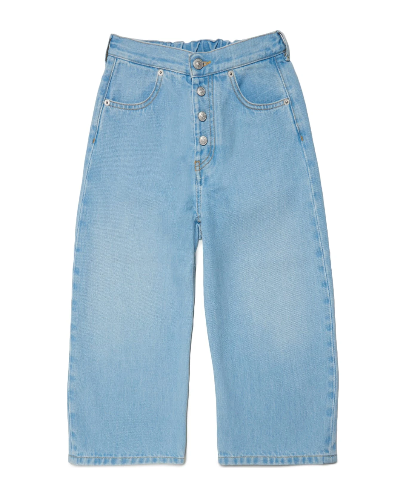 Five-pocket jeans in light-coloured treated denim with button fastening. An iconic garment to face everyday challenges with style and elegance. Made from 100% cotton. Featuring an oversized fit, all MM6 garments are unisex. Every child is free to wear what they want and how they want.