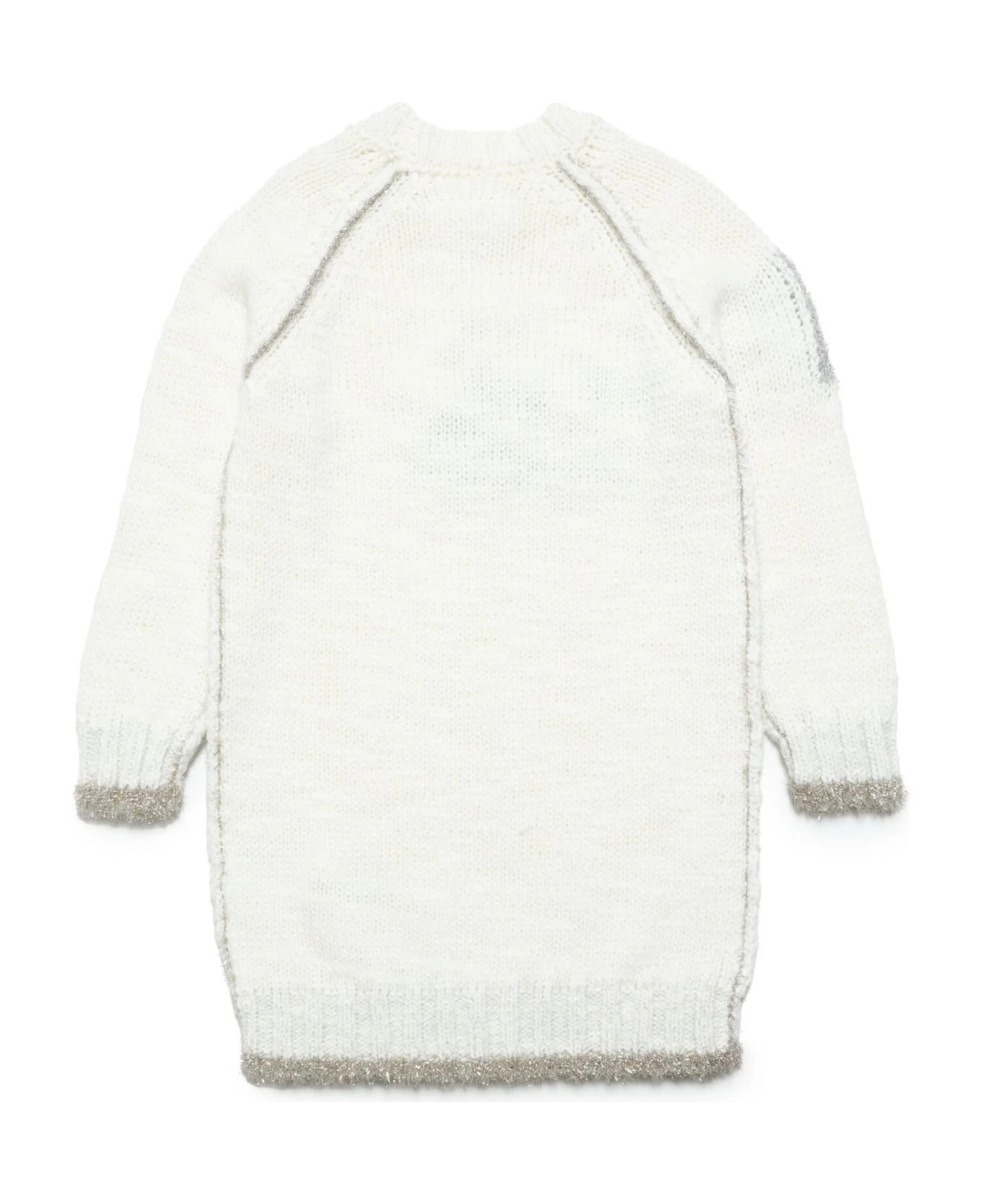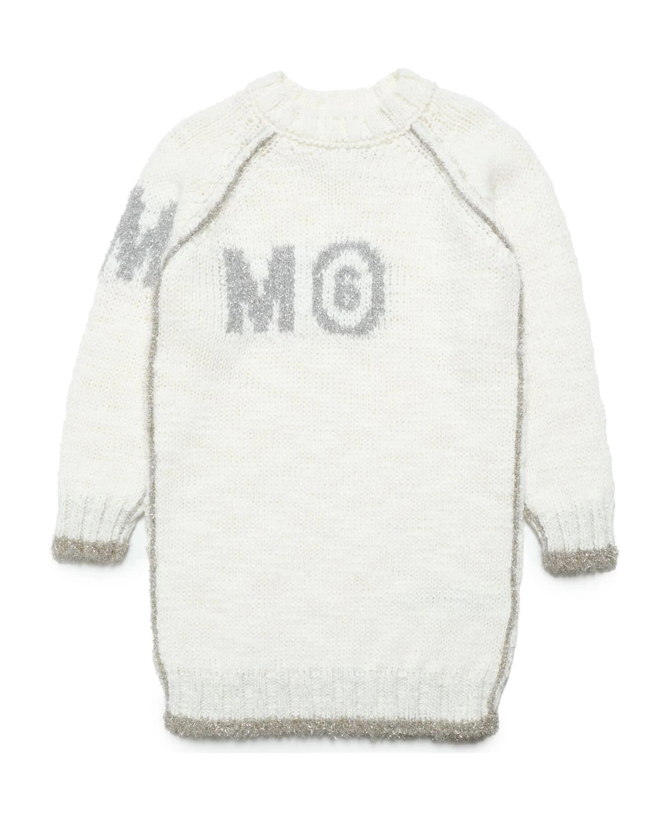 crew-neck, long-sleeved, wool-blend maxi sweater dress with contrasting lurex detailing on seams, collar, cuffs, hem, and logo, off-center toward the sleeve. Features distinctive stitching on the back. An item full of style, perfect for giving personality to casual looks. Featuring an oversize fit, all MM6 garments are unisex. Each child is free to wear what they want and how they want.