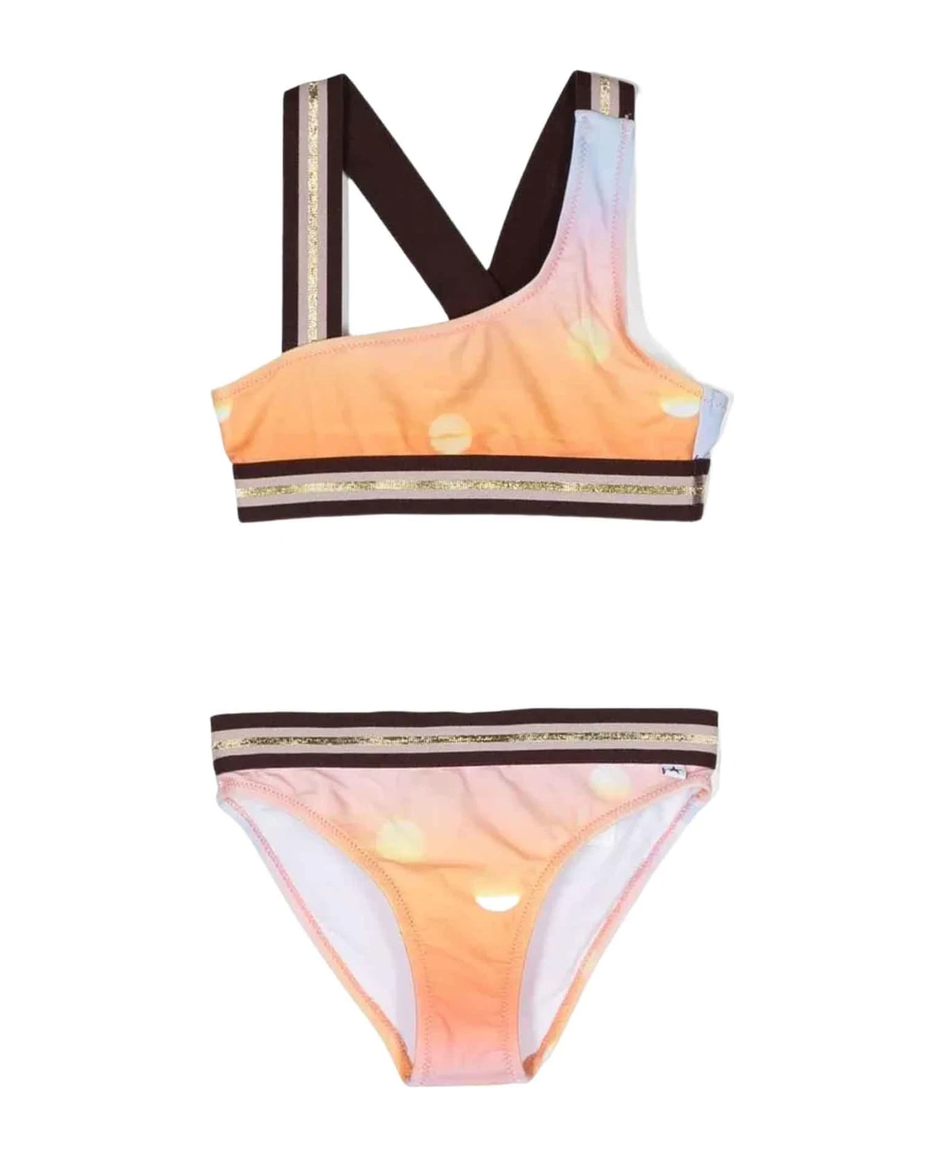 Orange bikini girl kids. Asymmetrical design, elasticated design, mini logo plate, mid rise, elasticated waist and stretch design. Recycled Polyester 85%, Elastane 15%