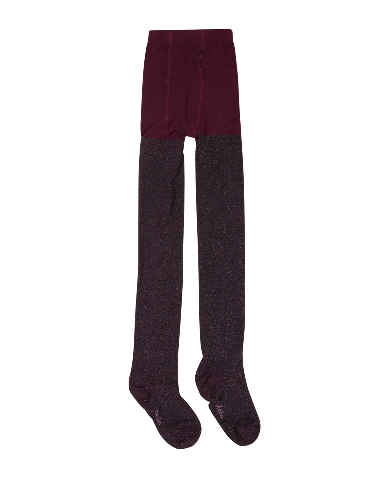 Purple tights with elasticated waist, they are decorated with lurex and logo on the bottom. This article is Oeko-Tex certified.