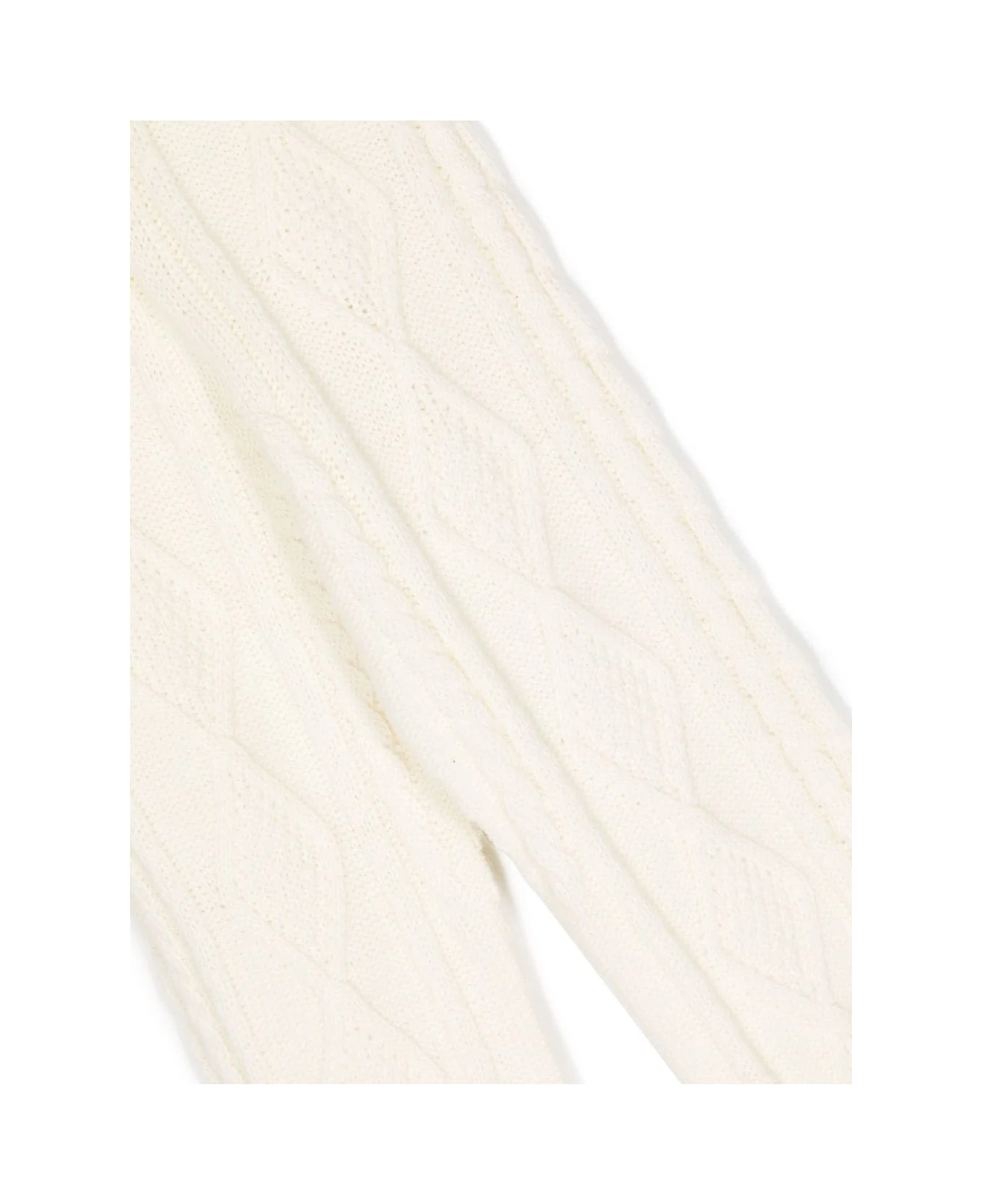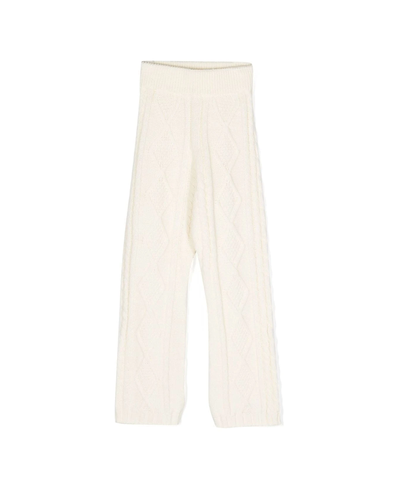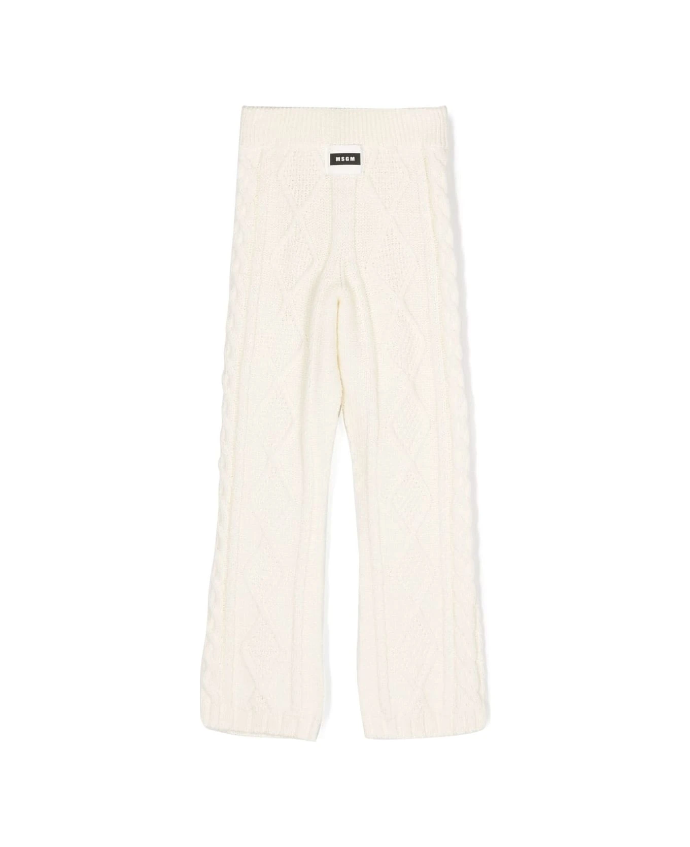 MSGM Kids palazzo trousers made of white wool-blend knit with diamond and braid pattern, ribbed elasticated waist and contrasting logo patch on the back.