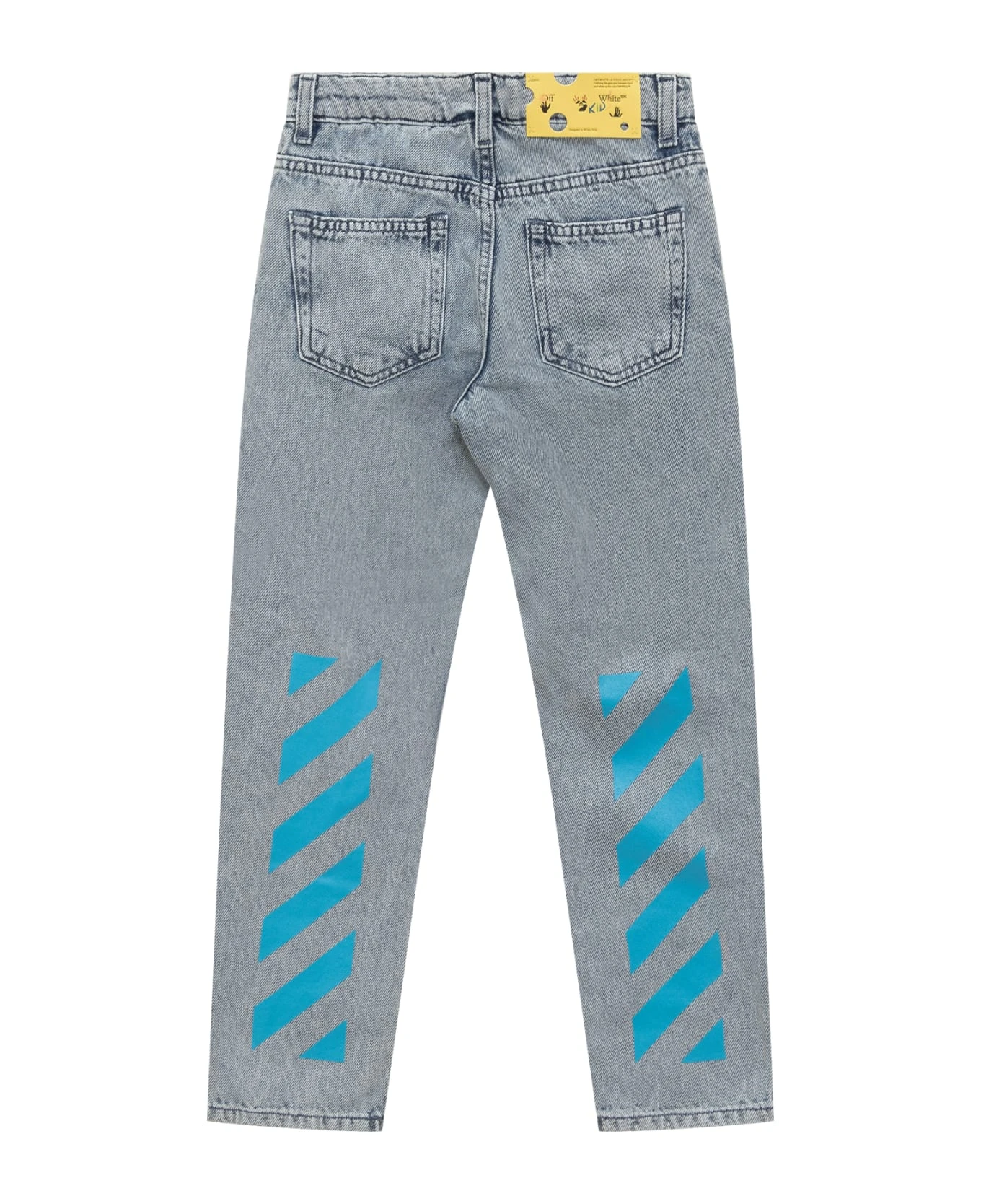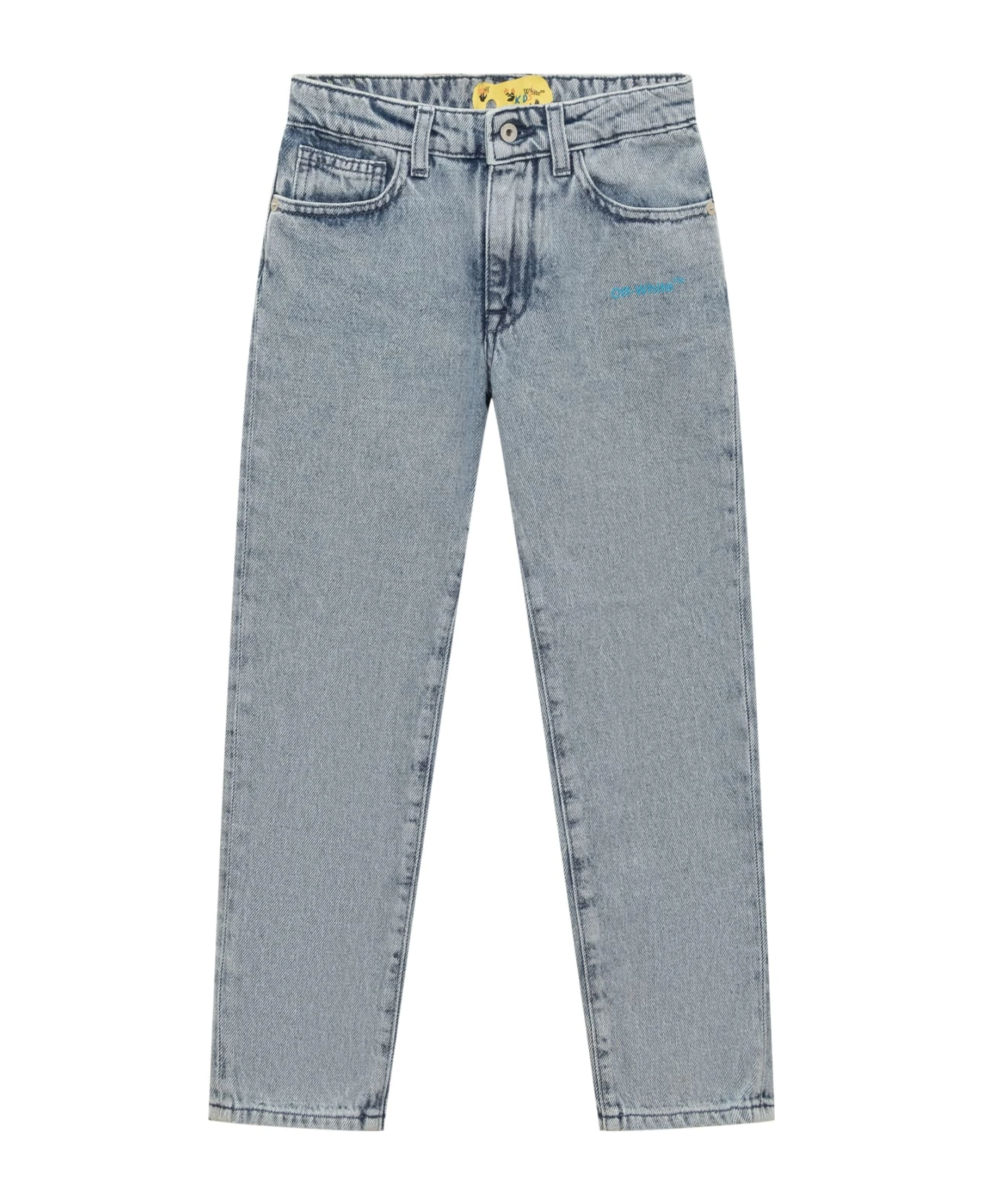 Long jeans. Zip and button closure. Belt loops. 5 pockets. Diagonal print on the back. Logo on the front.