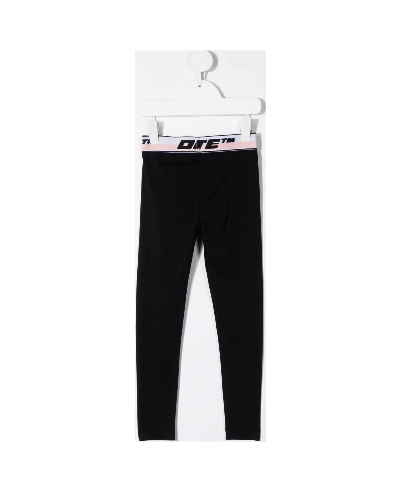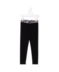Black sports leggings for girls by Off-White Kids made of stretch cotton and finished with a logoed waistband in contrasting color.