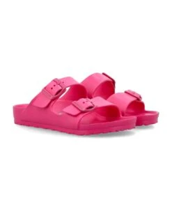 Birkenstock ‘ariziona’ Silver-colored Flat Sandals With Double Buckles In Metallic Leather Girl