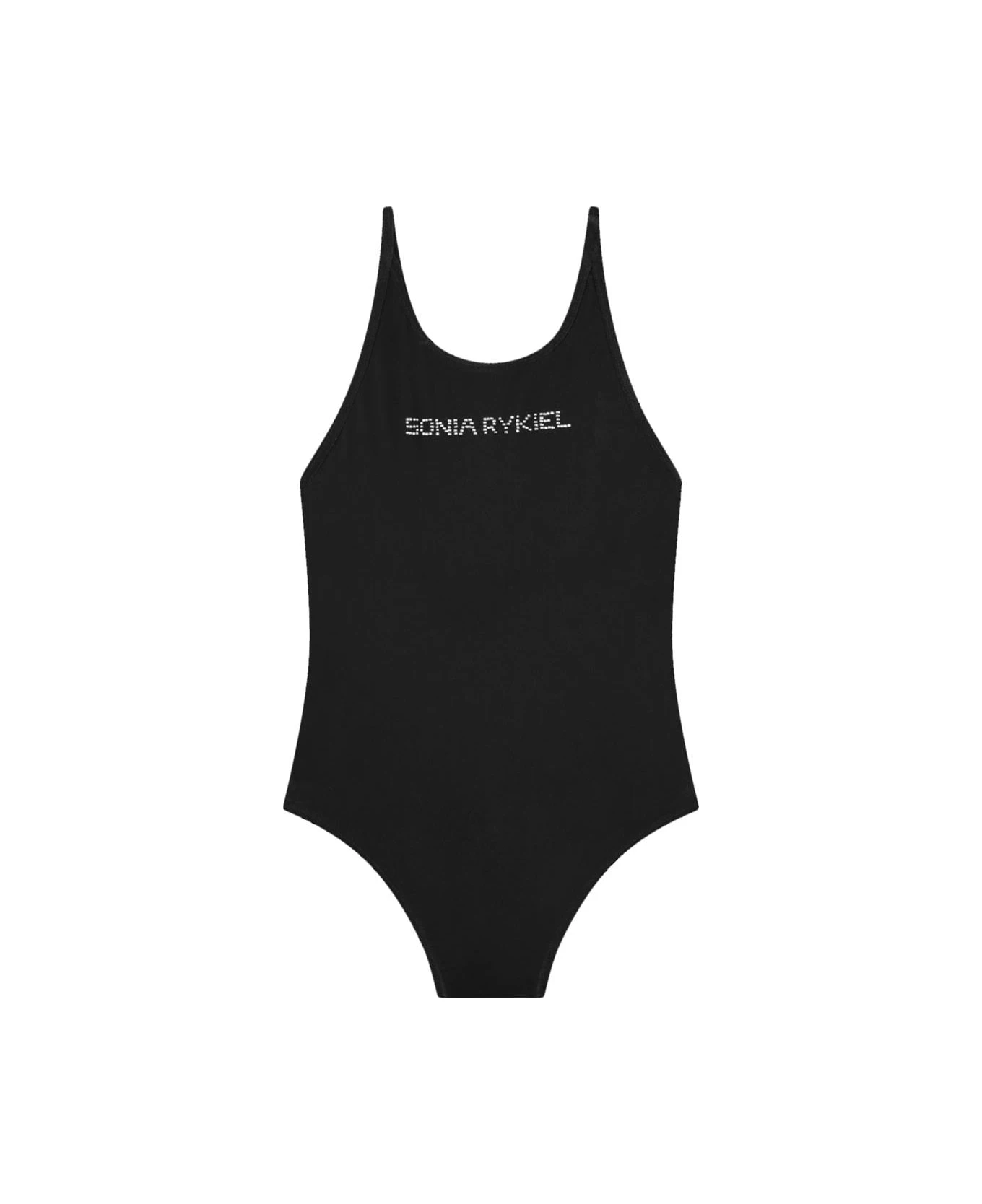 logo-embellishment velvet swimsuit from SONIA RYKIEL ENFANT featuring black, stretch-design, velvet effect, logo embellishment, spaghetti straps, scoop back and rear criss-cross straps. Be mindful to try on swimwear over your own garments..