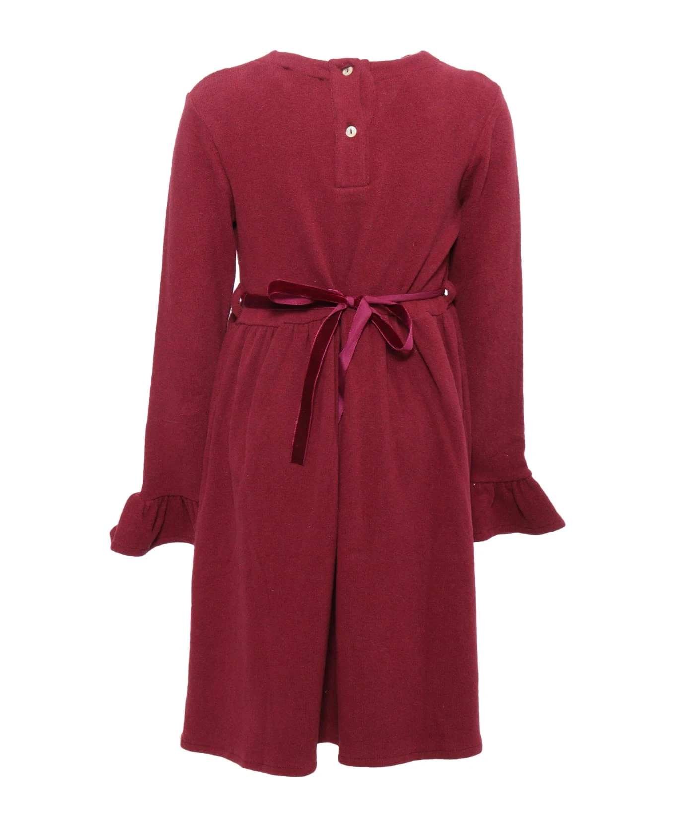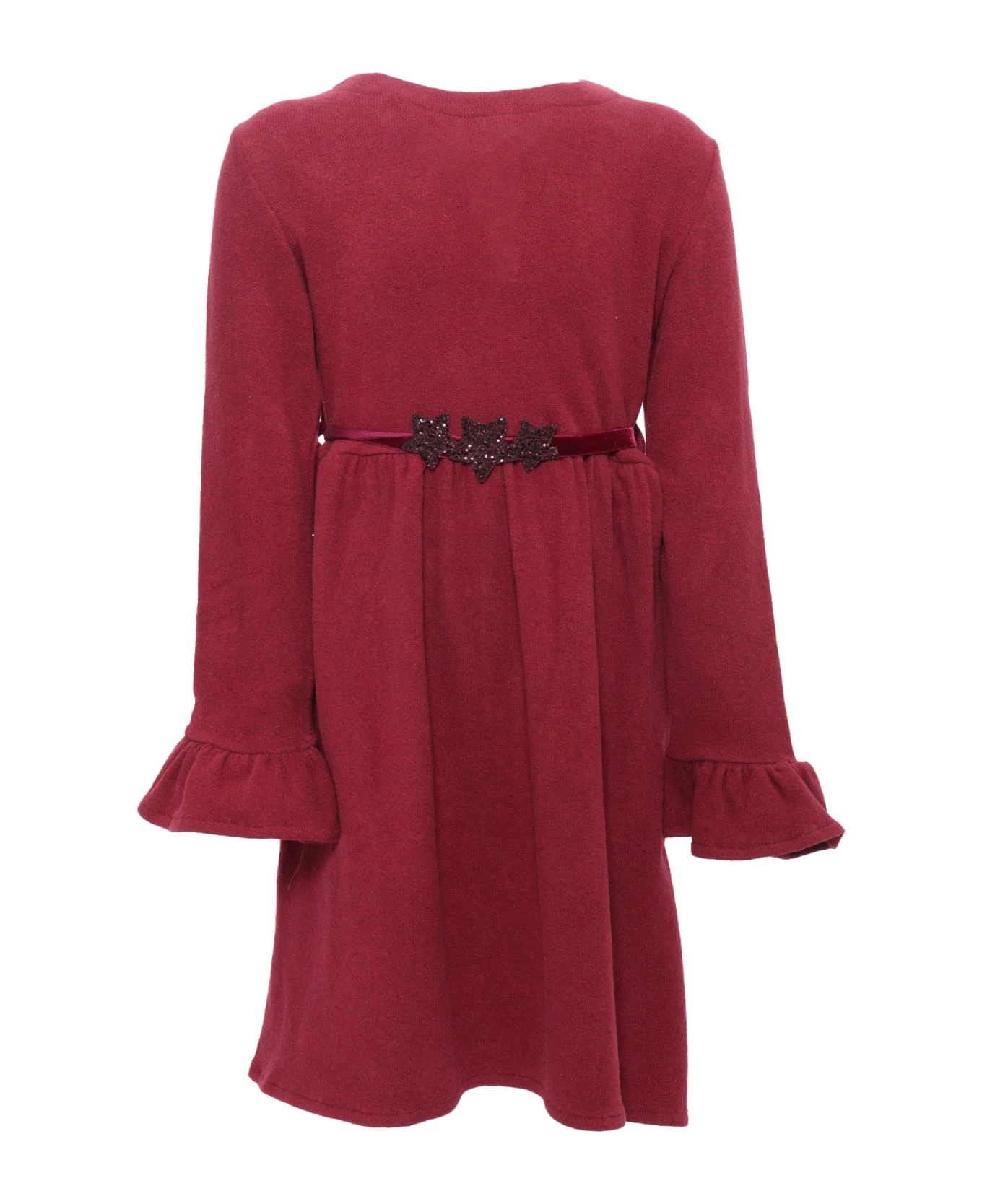 Warm cotton dress, petal sleeves, back fastening with mother-of-pearl buttons, velvet belt with glitter stars