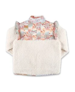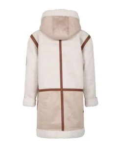 Chloé Chloe Cappotto Beige Con Pannelli A Contrasto In Montone Ecologico Con Cappuccio Bambina