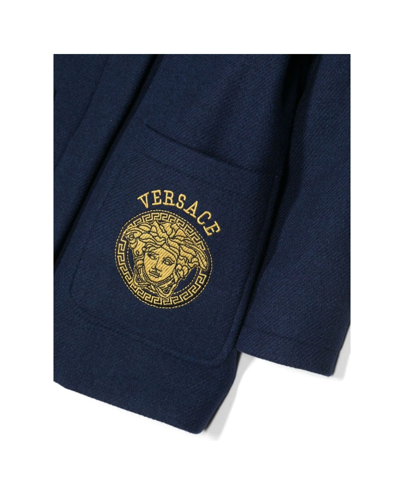 Versace Cappotto Blu In Misto Lana Con Cappuccio Bambina