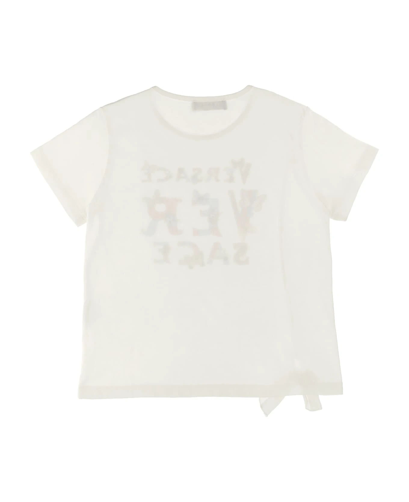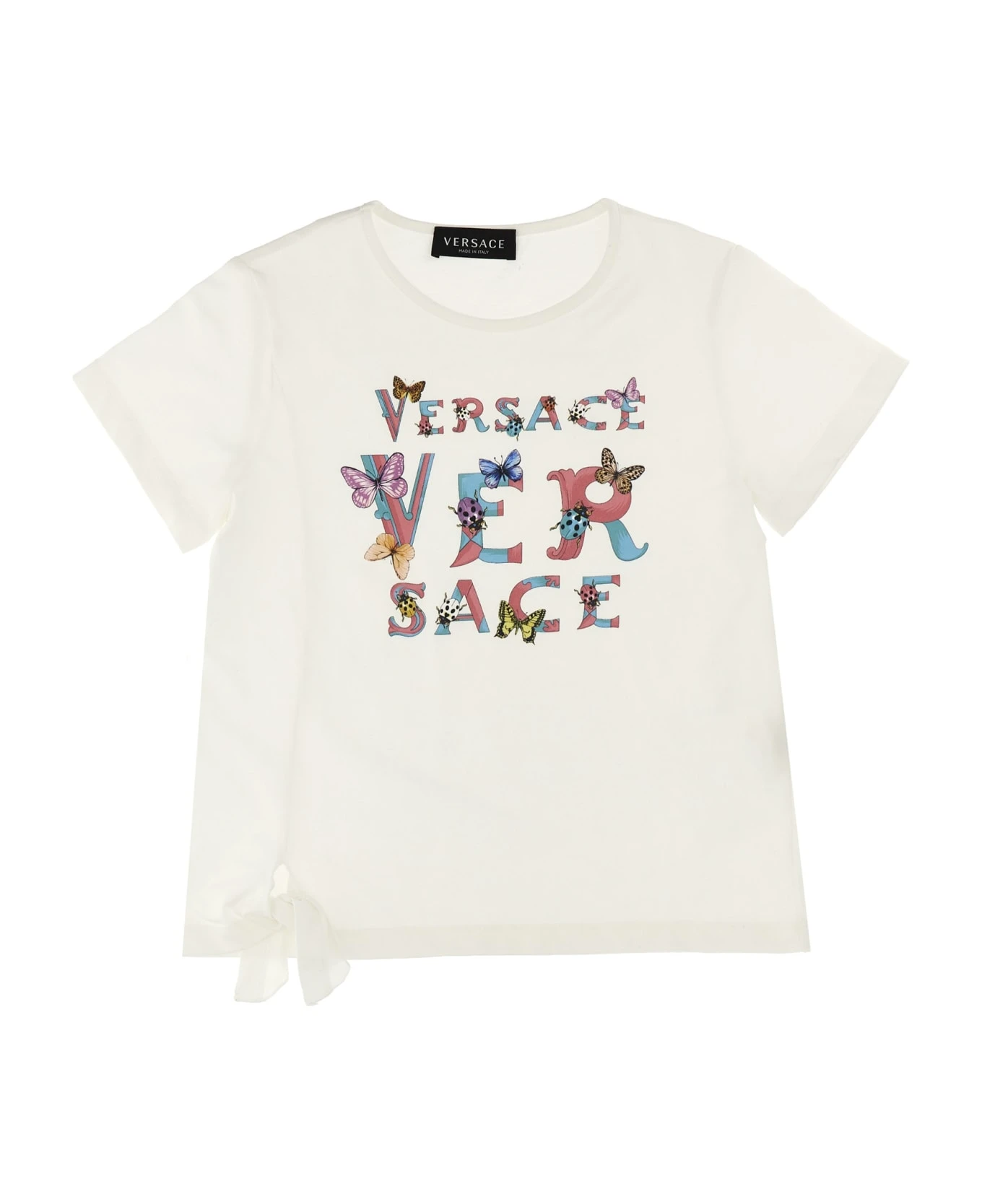 La Vacanza cotton capsule T-shirt with heritage Butterflies & Ladybugs Kids’ logo print at the front, crewneck, short sleeves and a front knot detail.