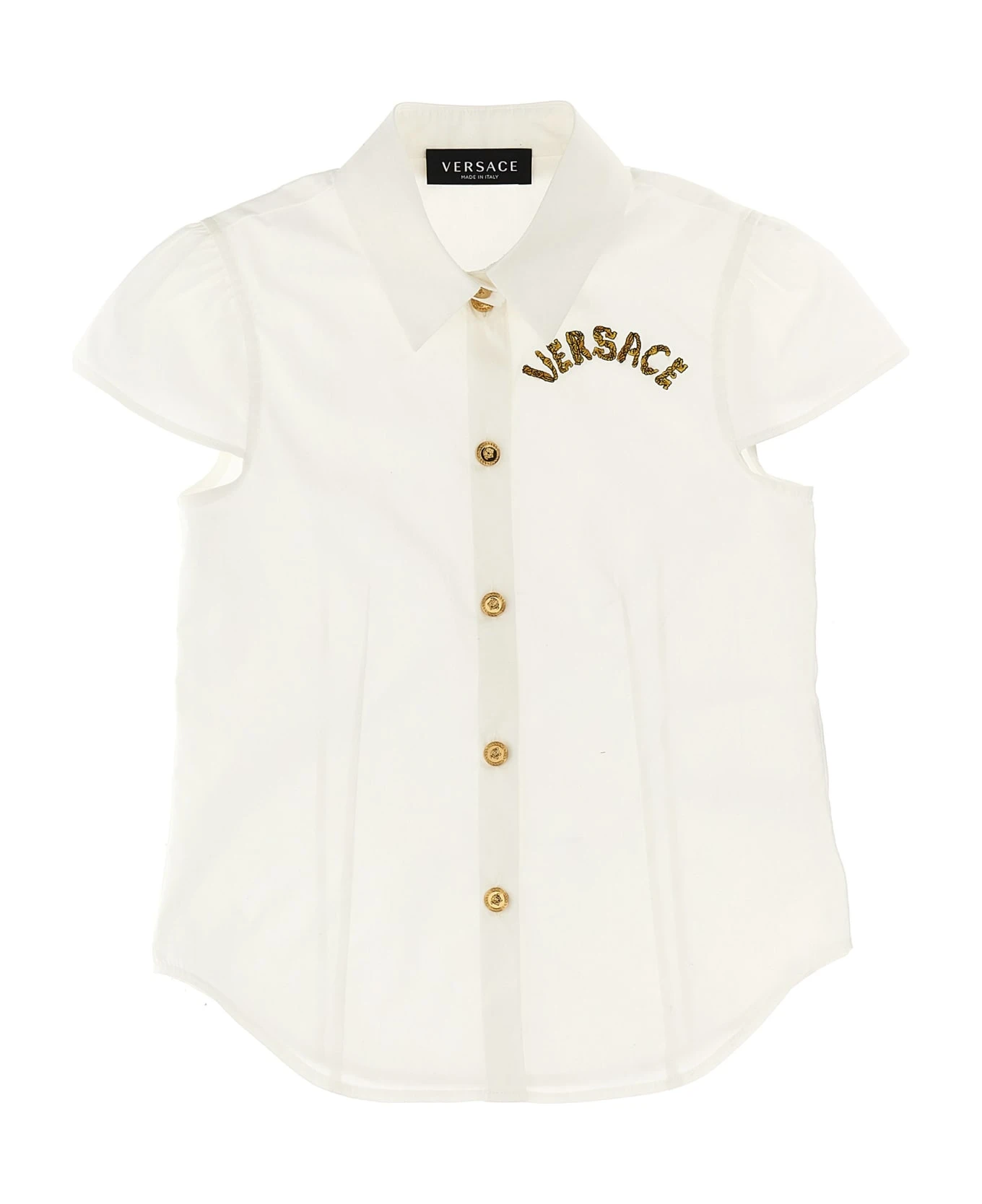 La Vacanza cotton poplin capsule shirt with front logo embroidery, button closure and short sleeves.