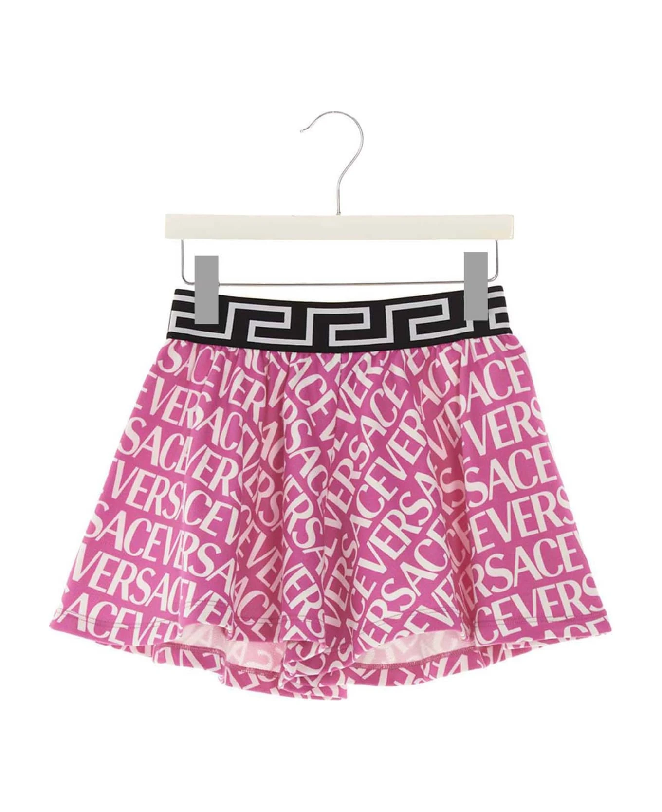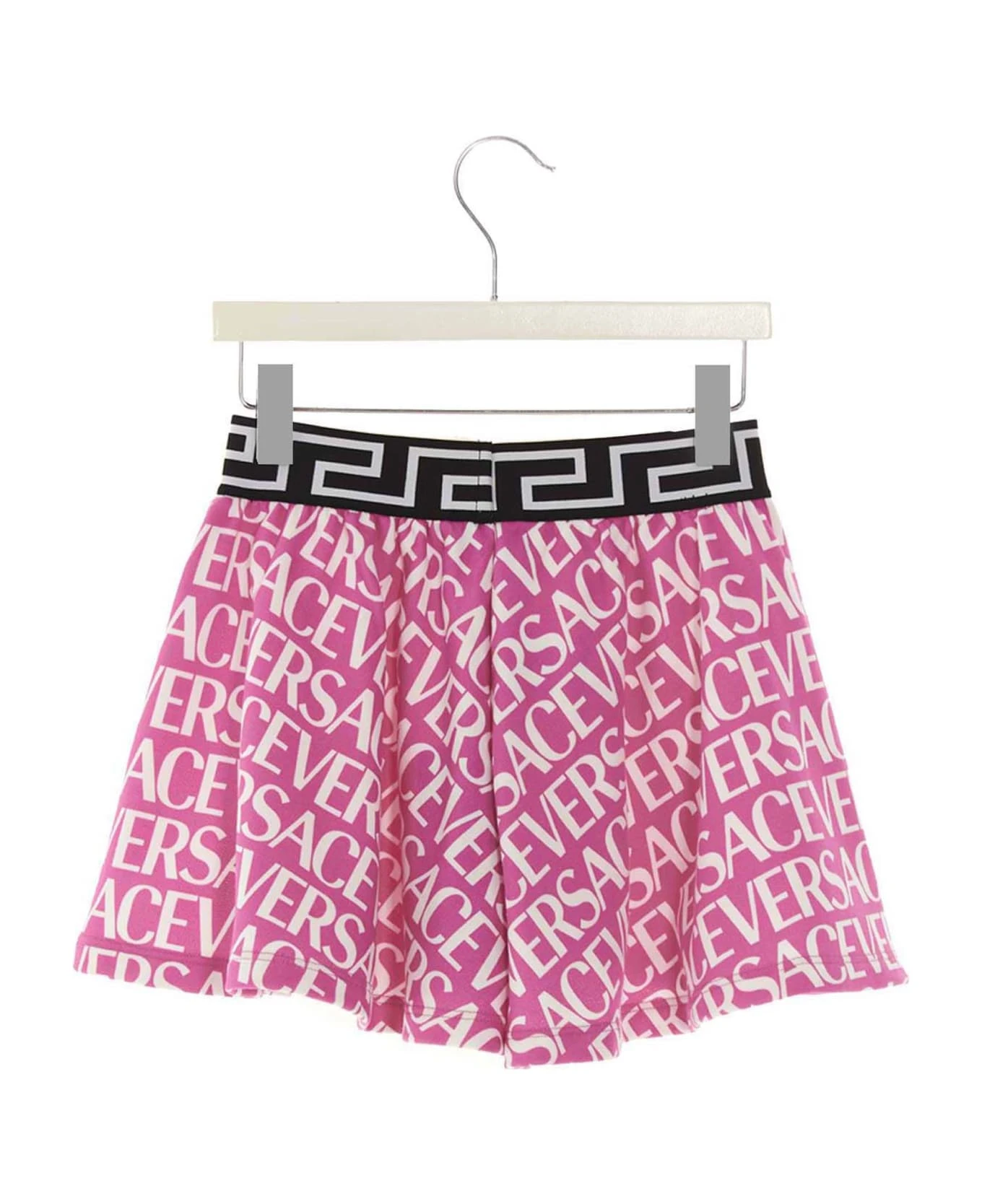 Cotton shorts with all-over ‘Versace On Repeat’ print, logo elastic waistband.