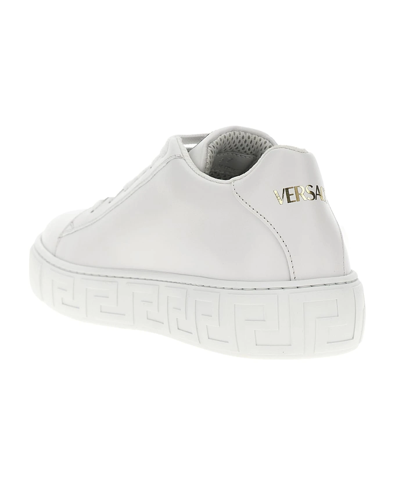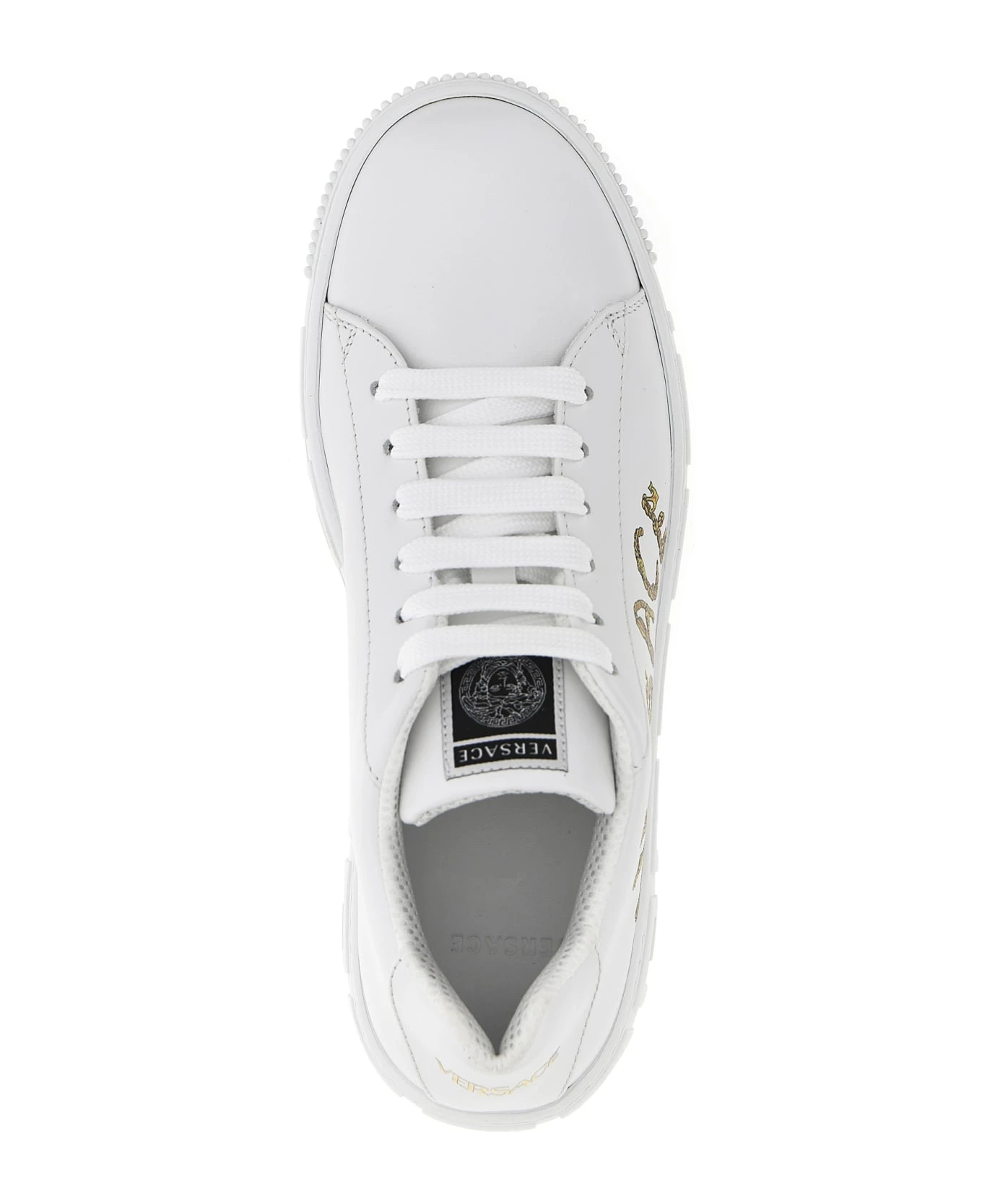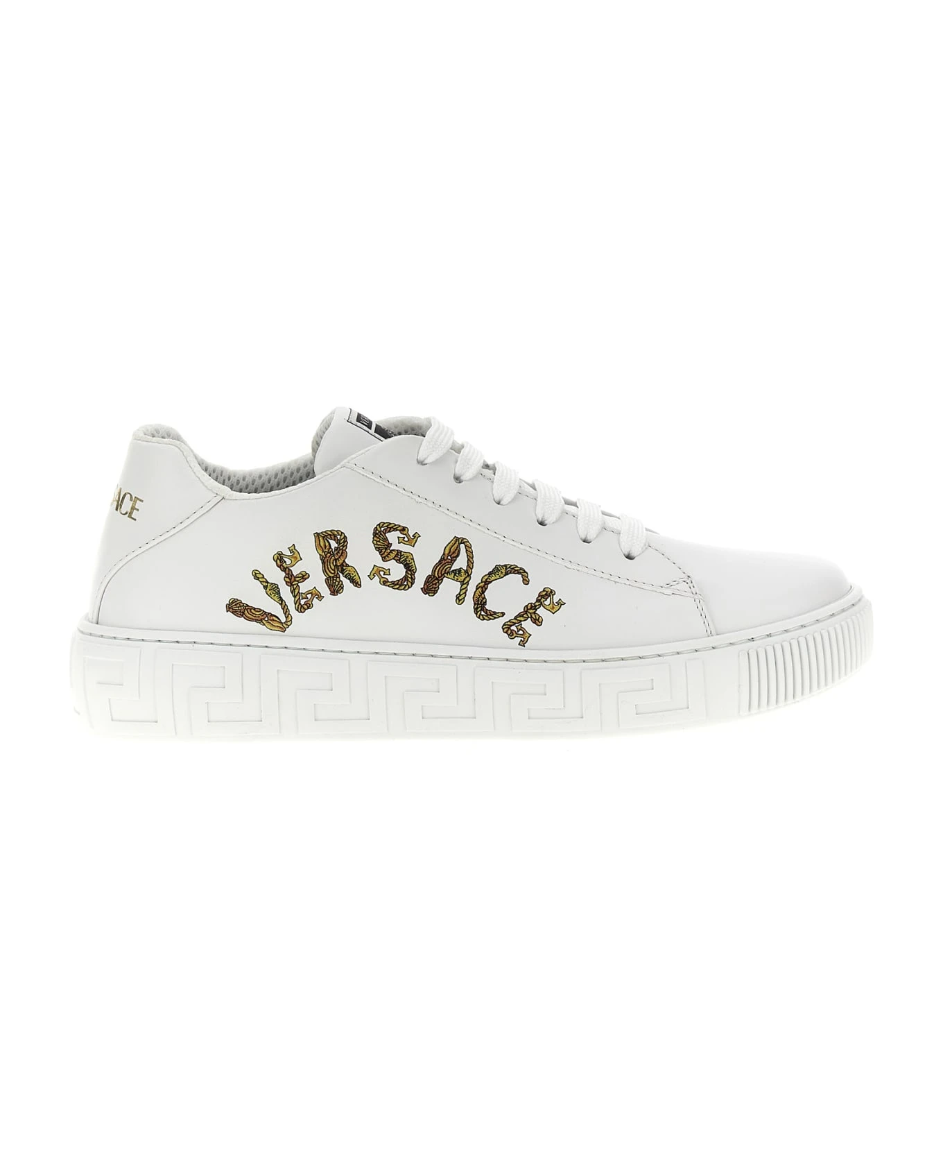 Leather lace-up sneakers with ‘Seashell Baroque Kids’ print, and a rubber sole.